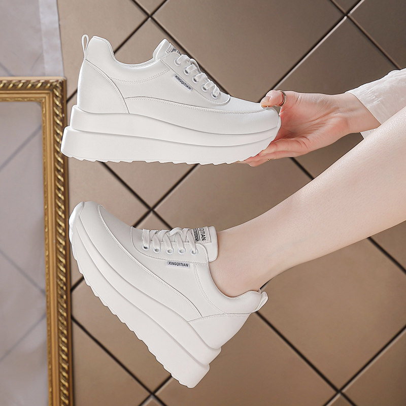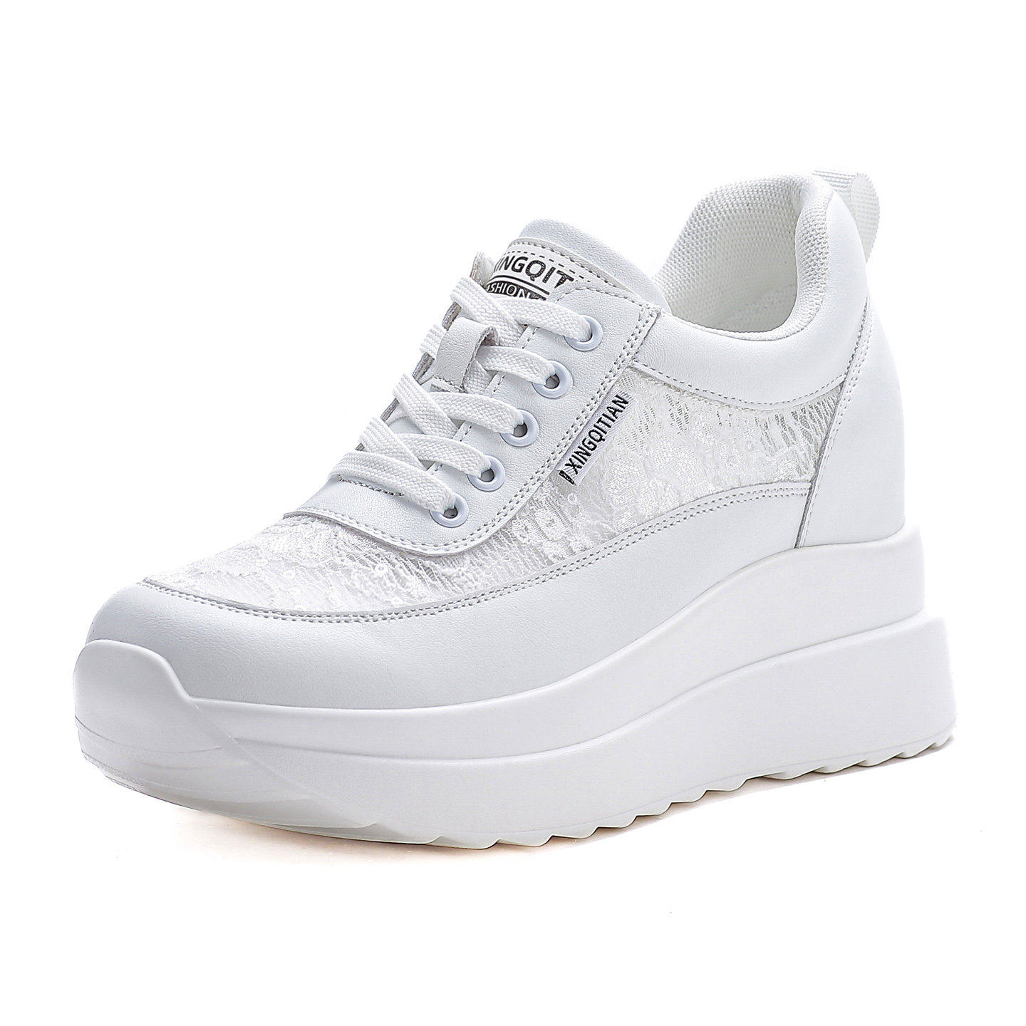 8cm内增高女鞋2026新款春夏透气网面运动休闲鞋女厚底蕾丝小白鞋