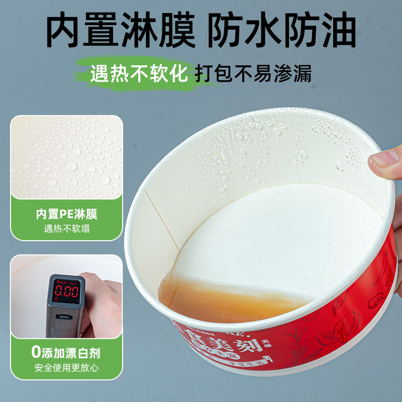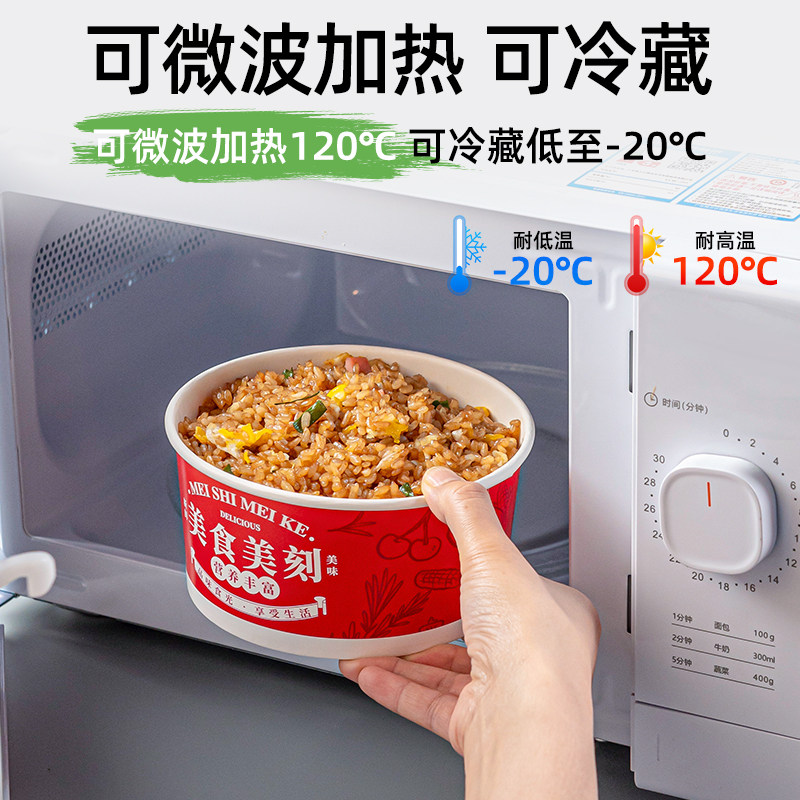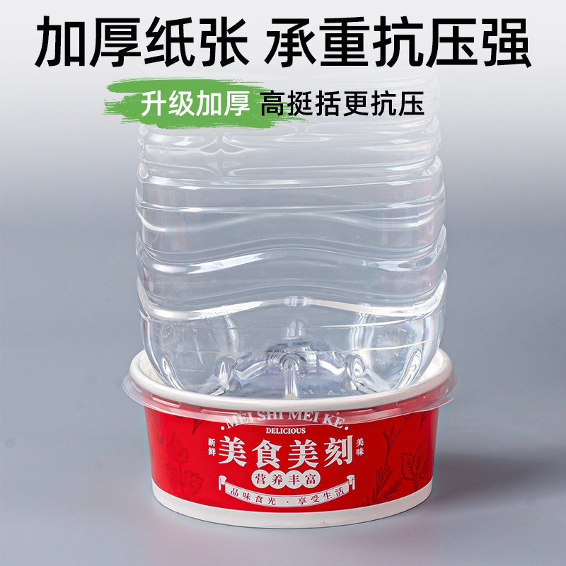 1000圆形国潮牛皮纸沙拉碗一次性餐盒外卖打包盒烤肉拌饭快餐饭盒