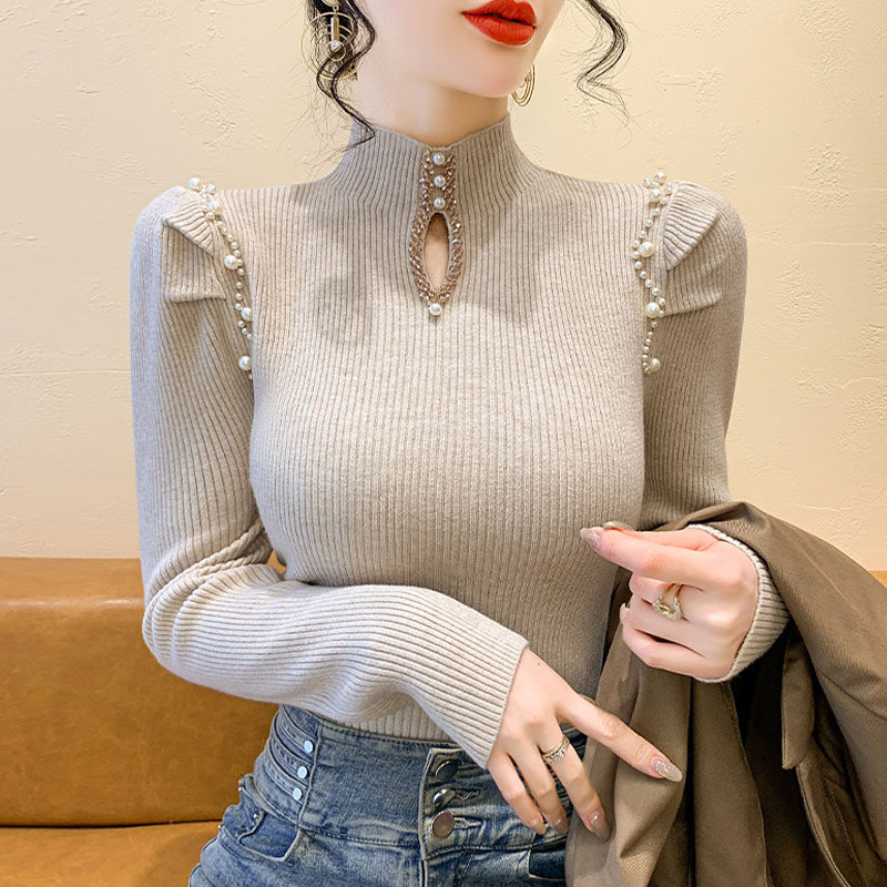 钉珠修身打底衫女秋冬季洋气内搭毛衣女款2026新款针织衫上衣女装