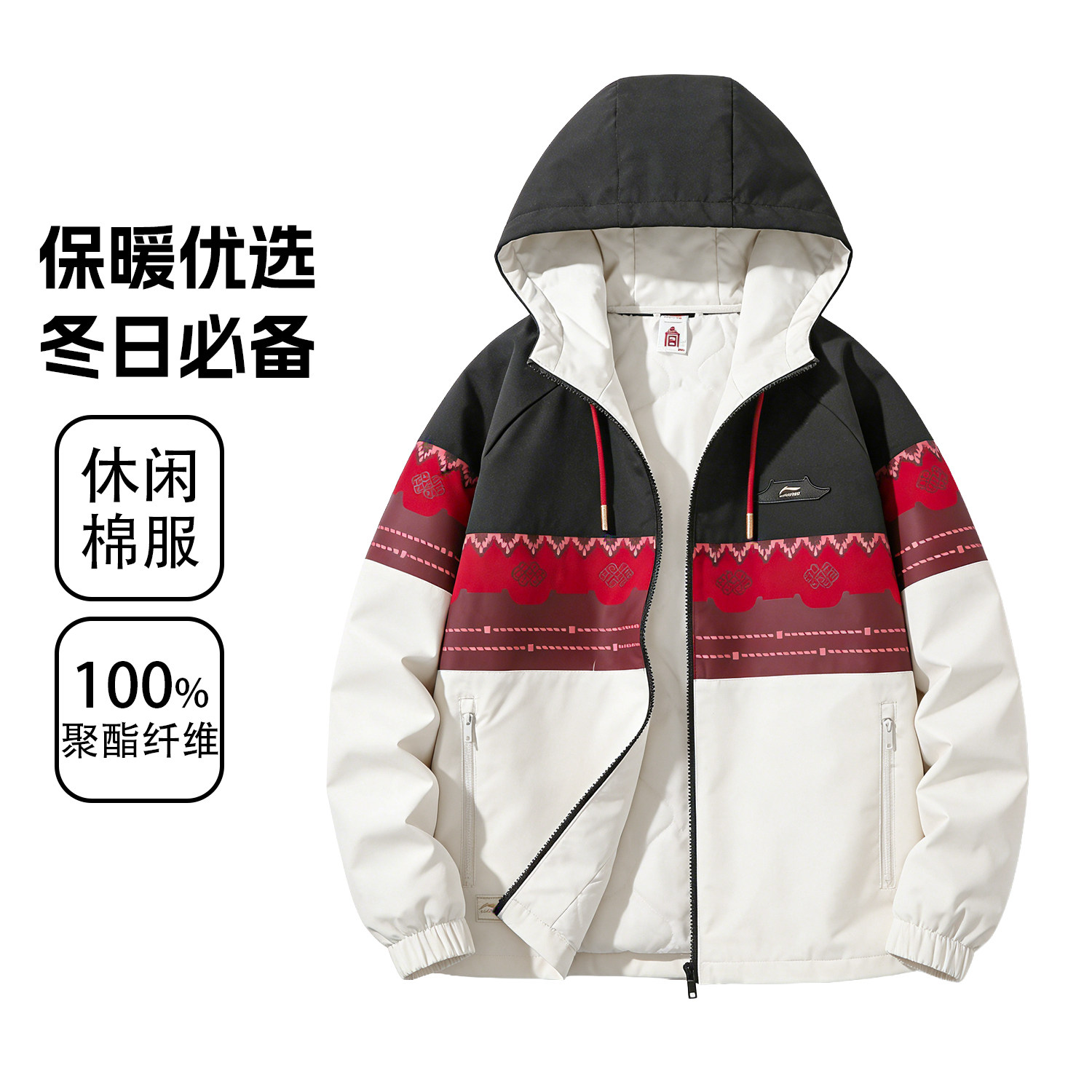 李宁故宫联名宽松短款棉服男款2026春季新款保暖防风百搭连帽外套