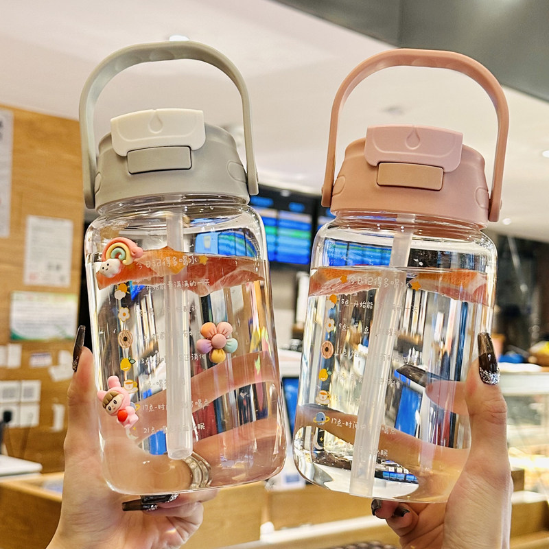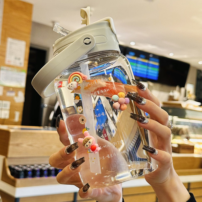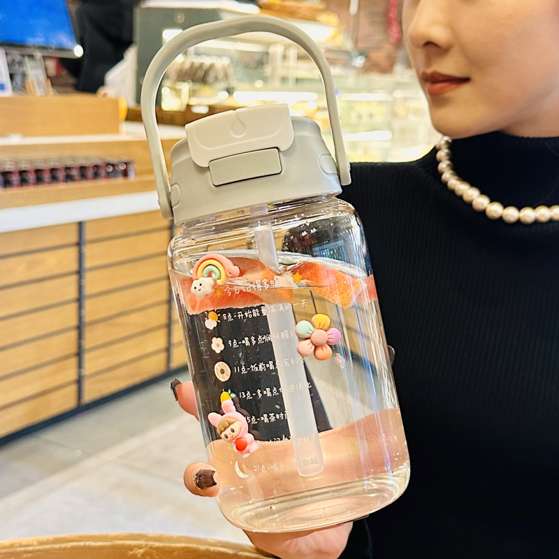 高颜值大肚杯子女生新款2025玻璃杯大容量1000ml便携双饮吸管水杯