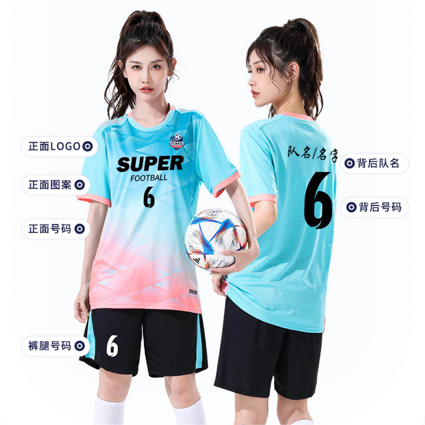 足球服套装女训练比赛队服定制2025新青少年男女款专业足球衣印字