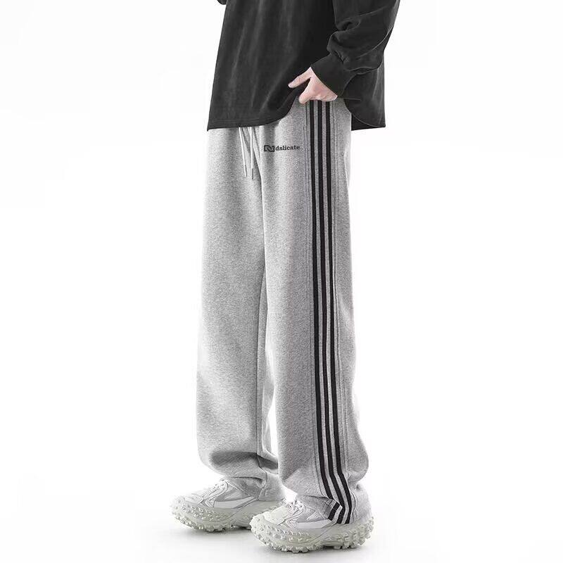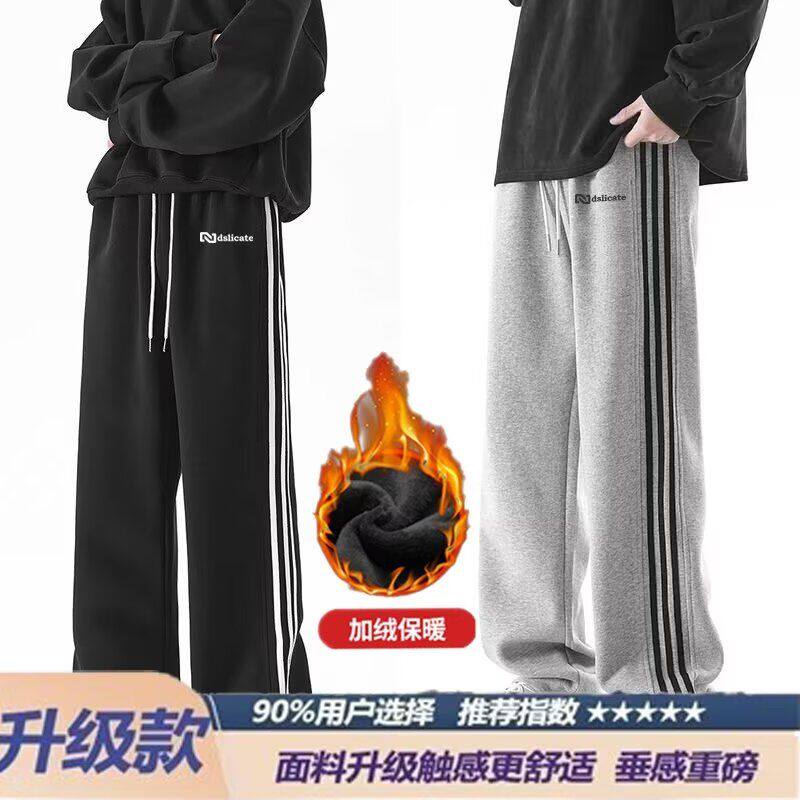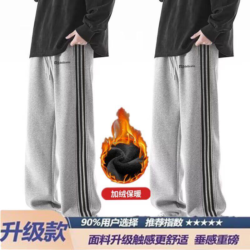 秋冬季加绒加厚裤子男初中学生宽松直筒裤青少年大童潮牌运动长裤