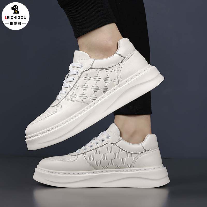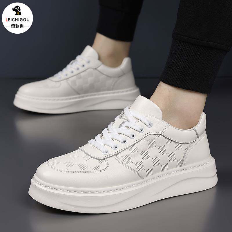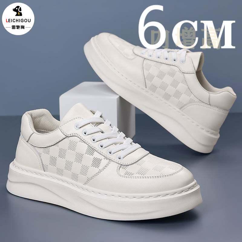 真皮休闲男鞋内增高10cm春季高级感小白鞋透气时尚增高鞋轻便板鞋
