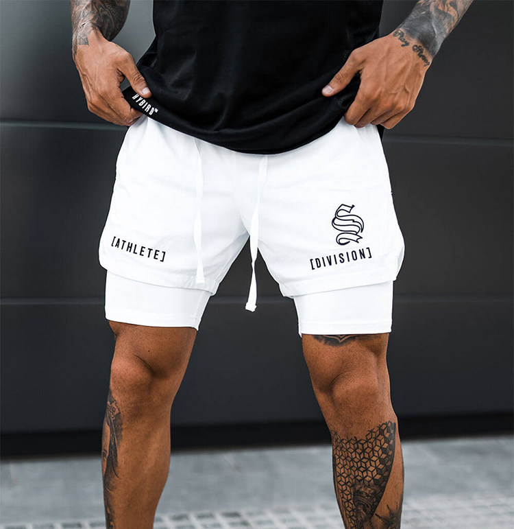 美式篮球短裤男双层带内衬假两件速干弹力训练三分裤健身运动跑步