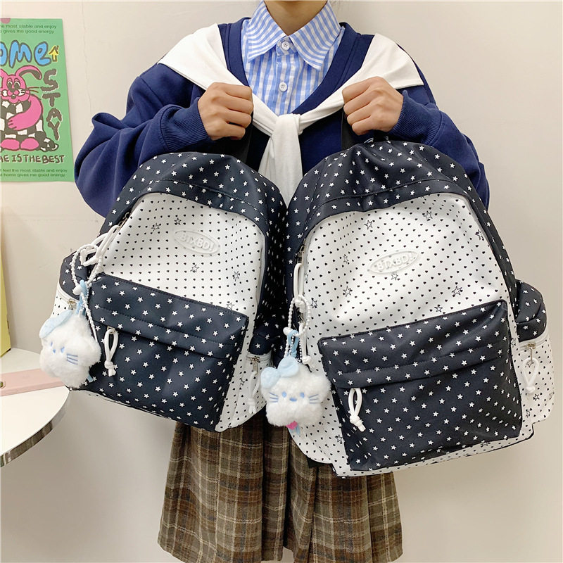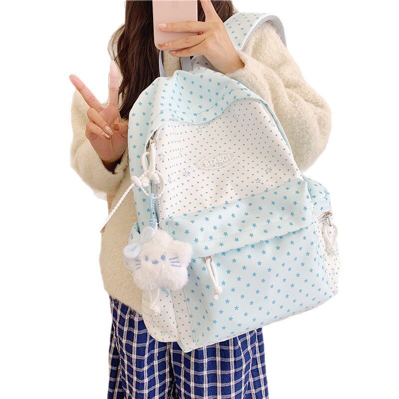 书包初中生女生ins风小众蓝色系大容量肩包高中双肩包高颜值书包-