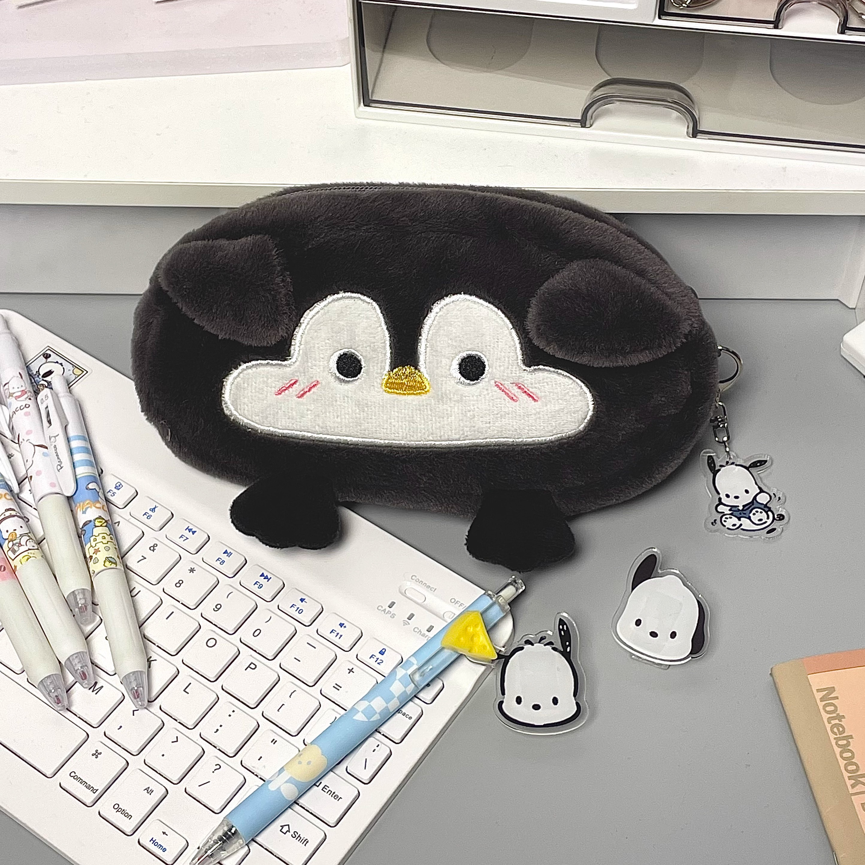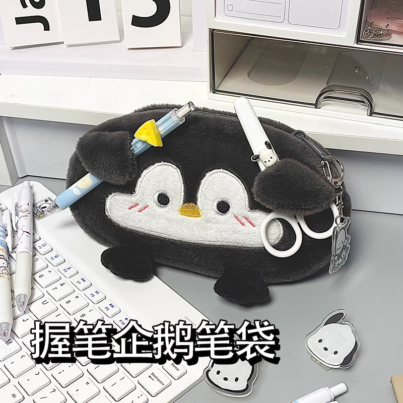 日系原创大容量毛绒握笔企鹅笔袋企鹅ins风高颜值文具盒新款可爱卡通化妆包多功能女学生文具收纳袋