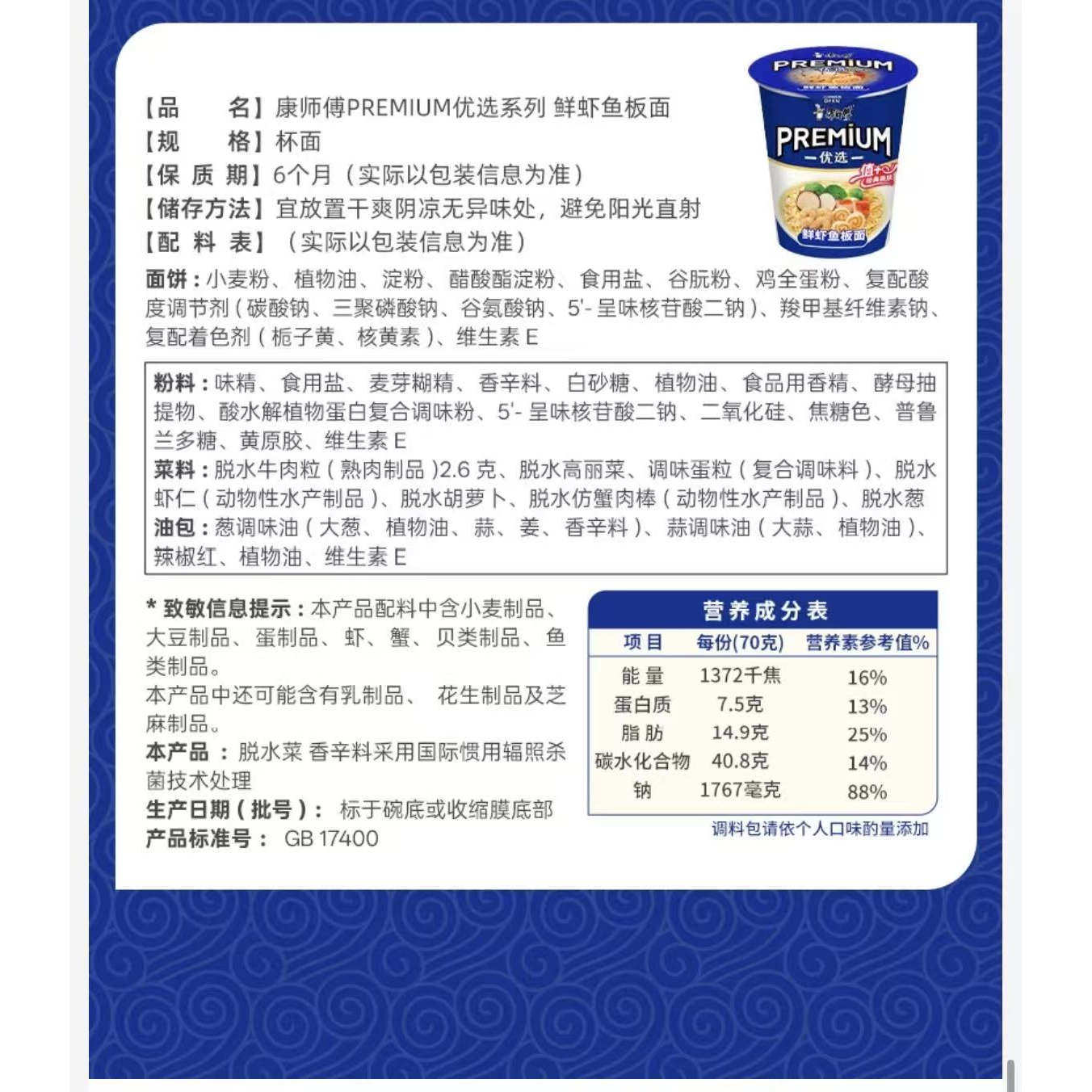 开市客代购康师傅优选鲜虾鱼板面经典红烧牛肉面超有料冲泡夜宵