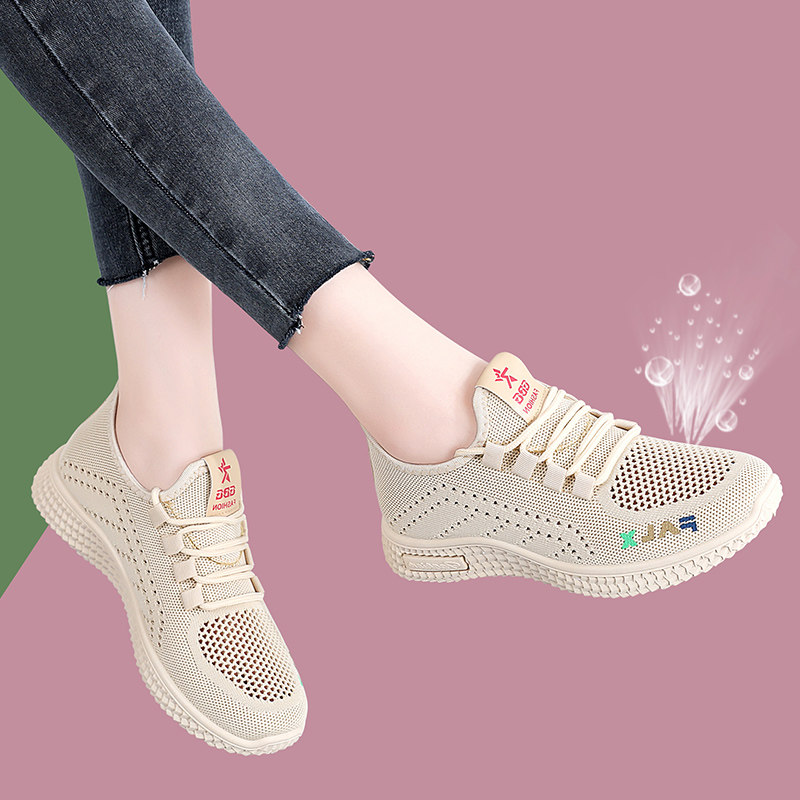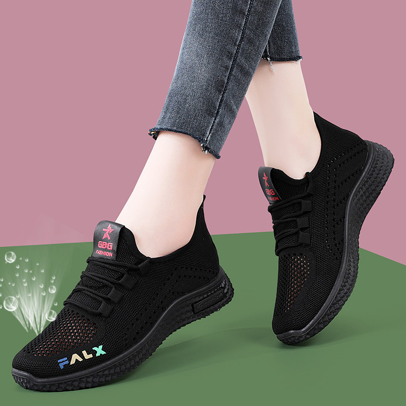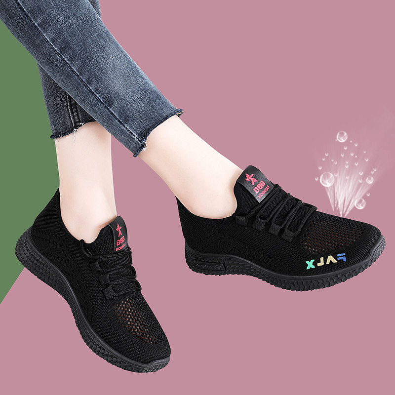 休闲时尚飞织网面透气运动鞋女健步防滑软底不累脚轻便舒适学生鞋