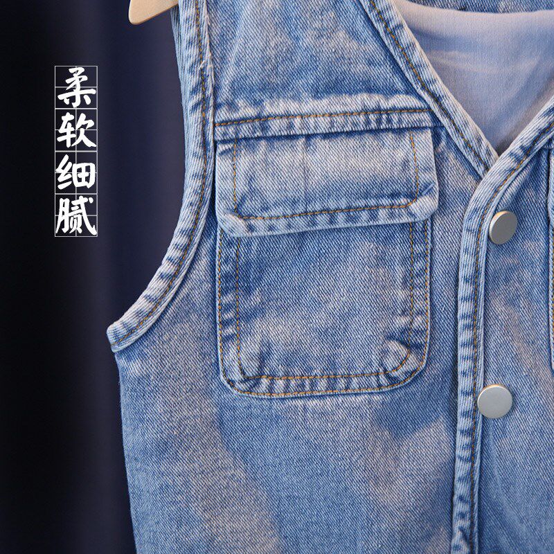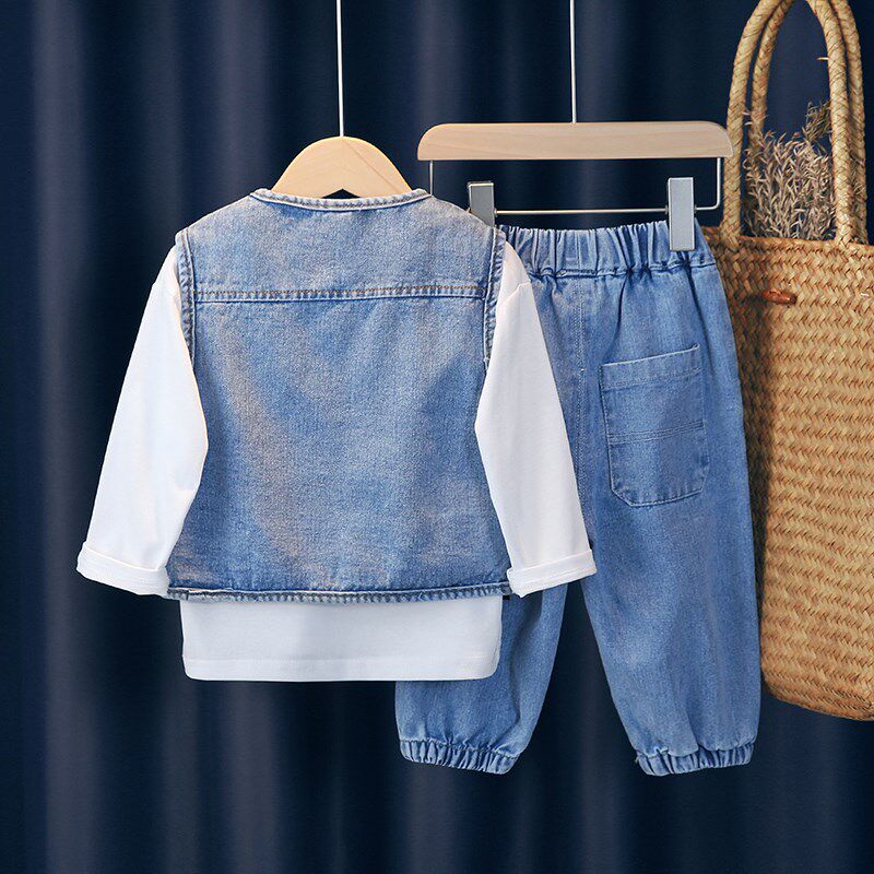 儿童牛仔套装春秋2025新款韩版宽松女童牛仔马甲洋气时髦三件套装