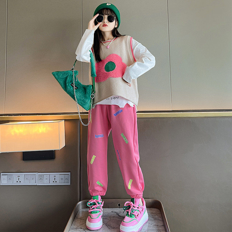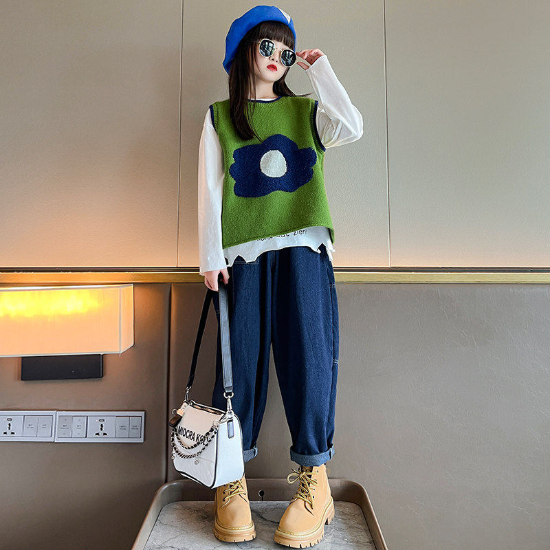 新款款春秋衣服洋气大童时髦女童2025马甲三件套儿童秋装套装女孩