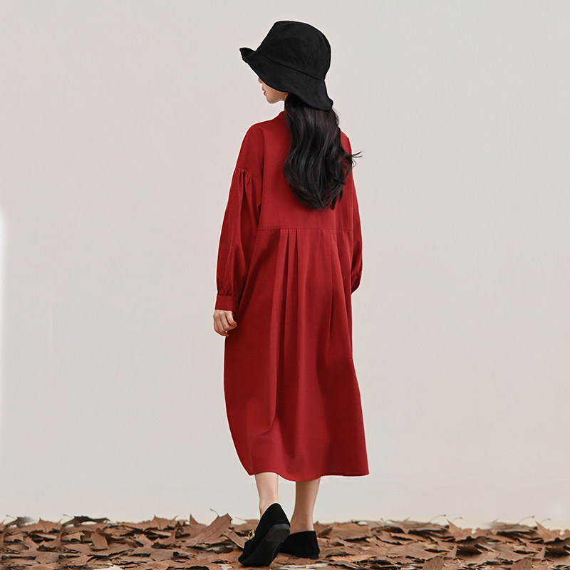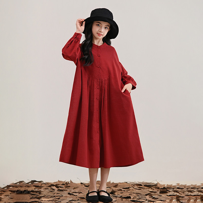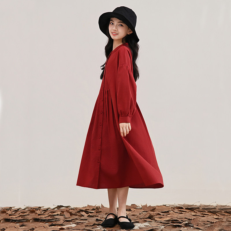 中大女童红色长袖连衣裙2026新款韩版休闲宽松公主裙女孩洋气春秋
