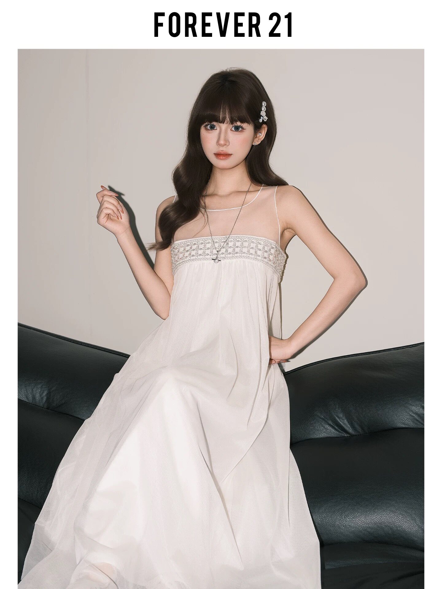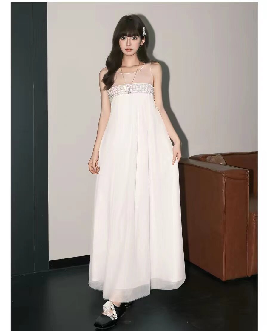 2026夏季复古气质高级感网纱钉珠白色无袖连衣裙小众长裙