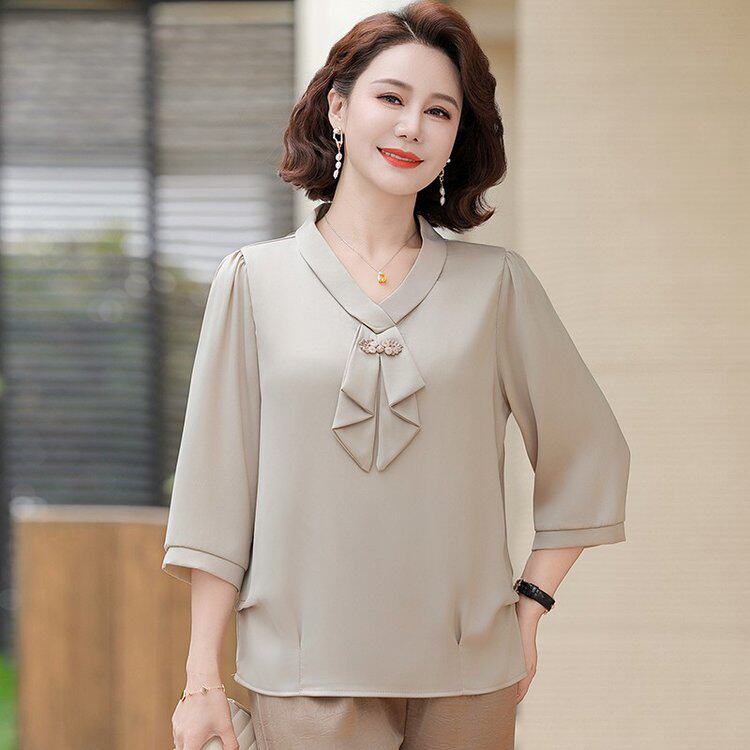 妈妈春装洋气女款打底衫中年女装春秋长袖T恤中老年2026新款上衣