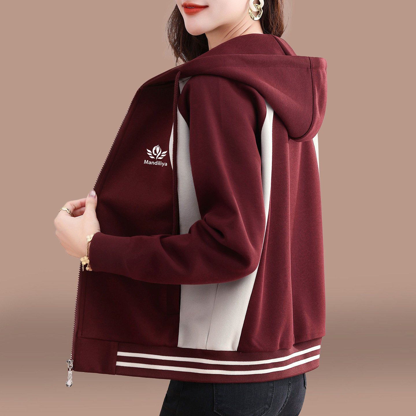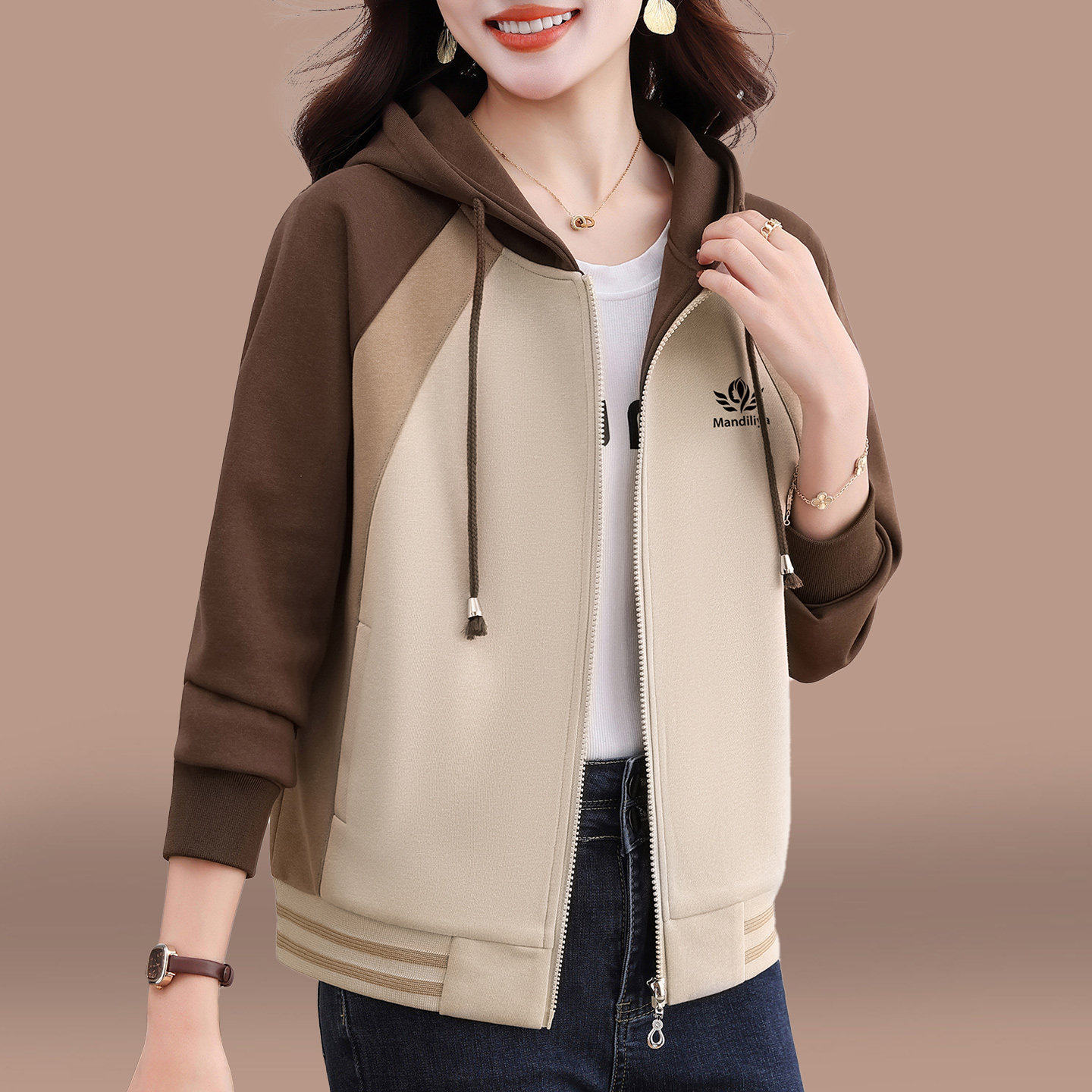 连帽卫衣女款春秋2026新款中年妈妈洋气春装拼接撞色拉链外套上衣