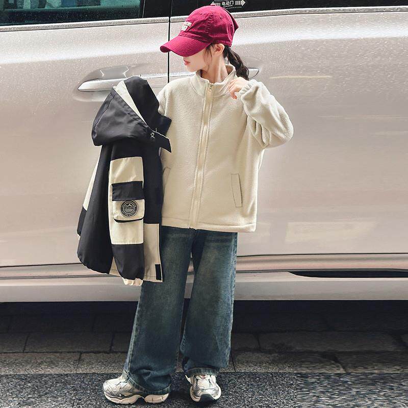 女大童冲锋衣秋冬装2025新款初中生外套女孩夹棉加厚三合一可拆卸