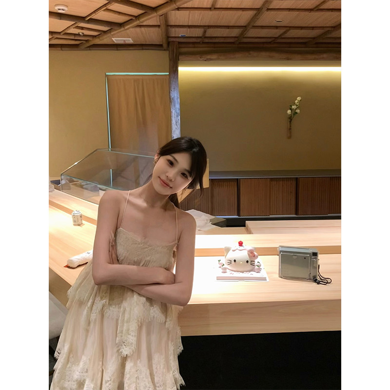 DUCHUNZI 一条仙女裙 蕾丝抽绳露背连衣裙春夏新款吊带裙气质女