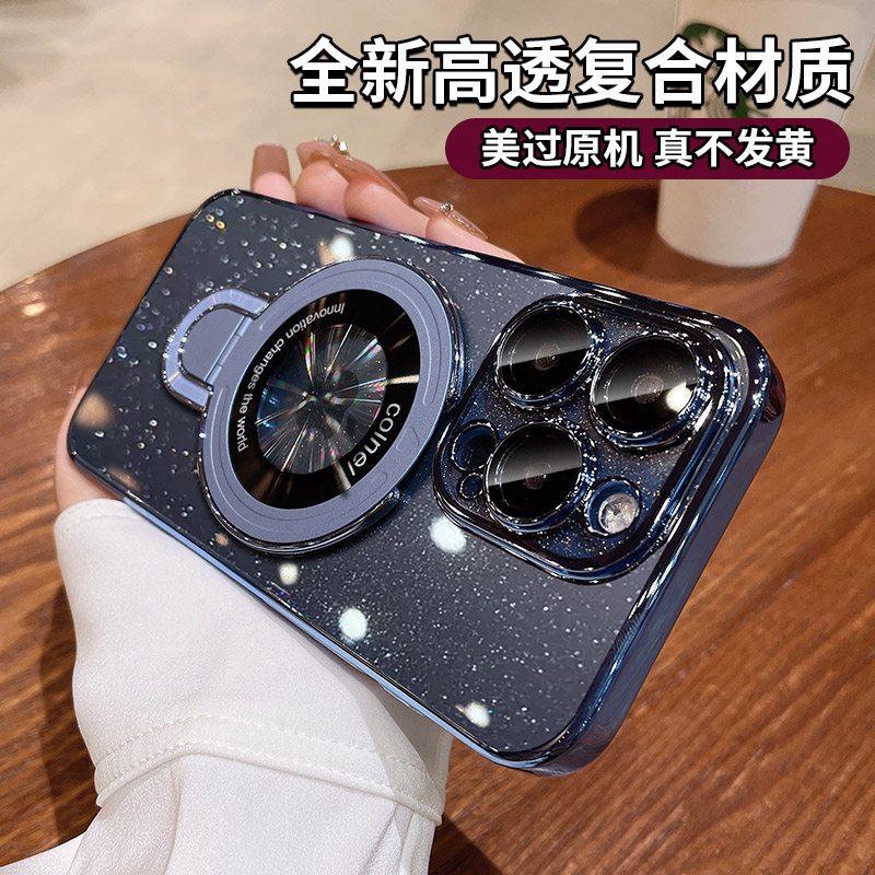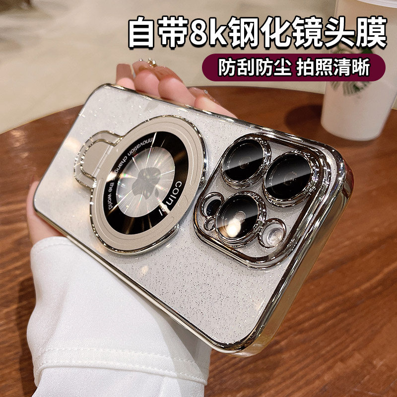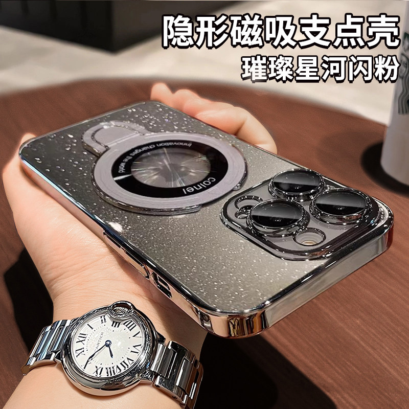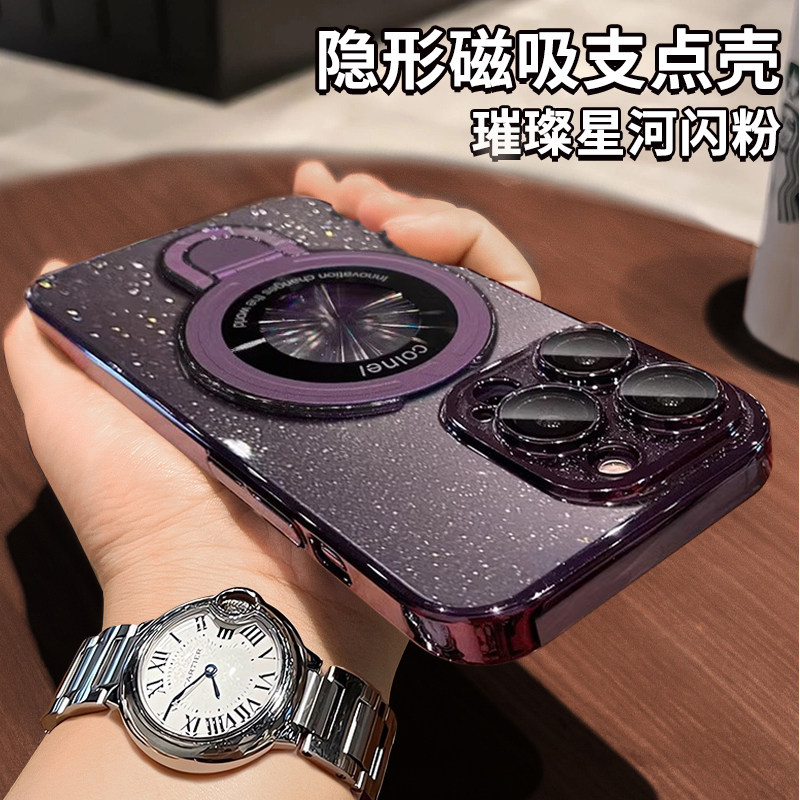 磁吸手机壳适用苹果16promax新款iPhone15pro高级感自带镜头膜全包防摔14Pro网红璀璨星河闪粉支架13轻奢女神