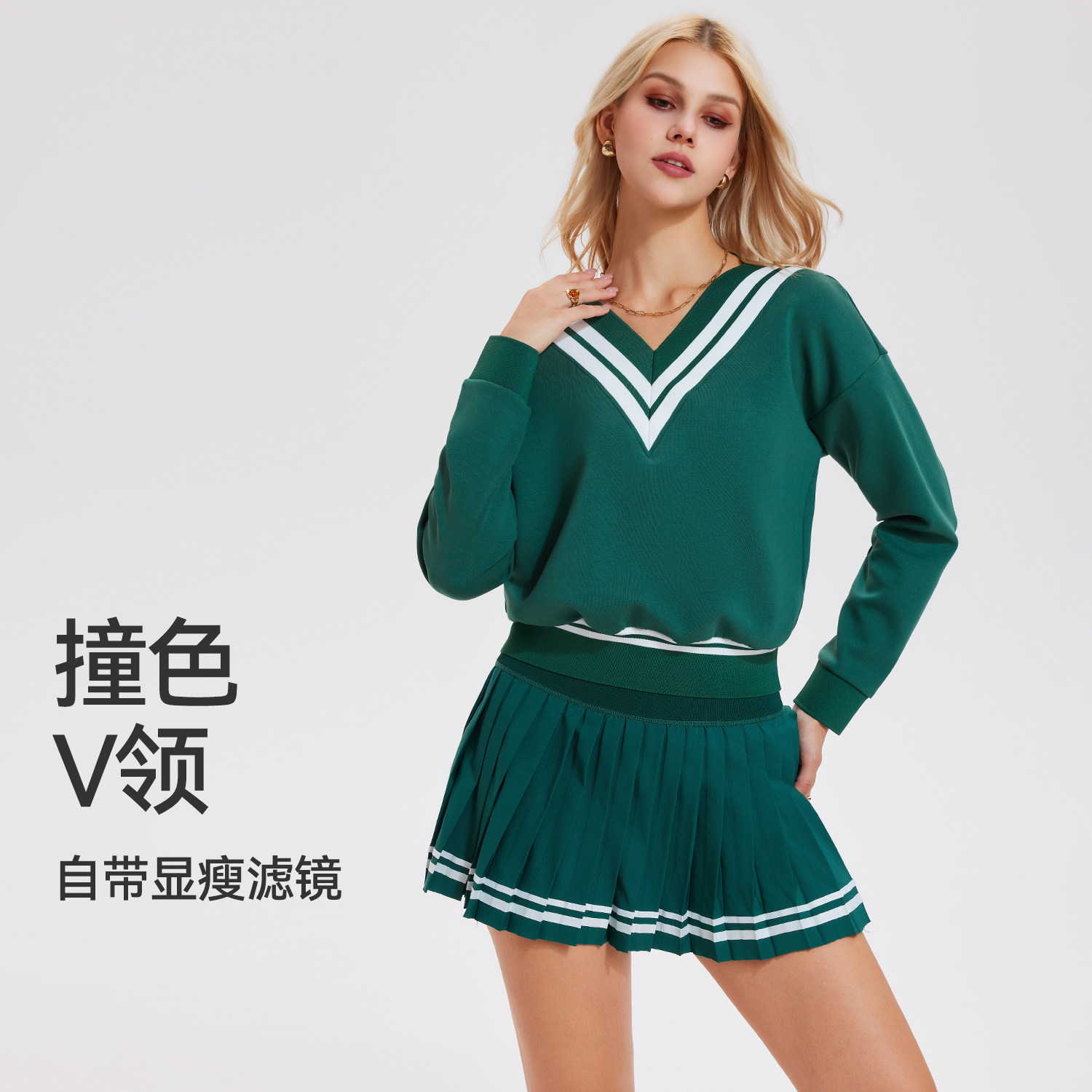 科里芙运动网球服女长袖学院风健身上衣春秋季羽毛球跑步训练套装