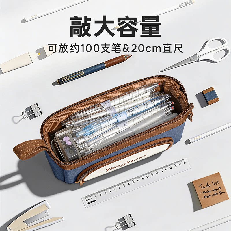大开口笔袋男孩大容量文具铅笔盒便携新款高颜值小众不撞款小学初中生用超火简约高中笔袋痛包ins风男生