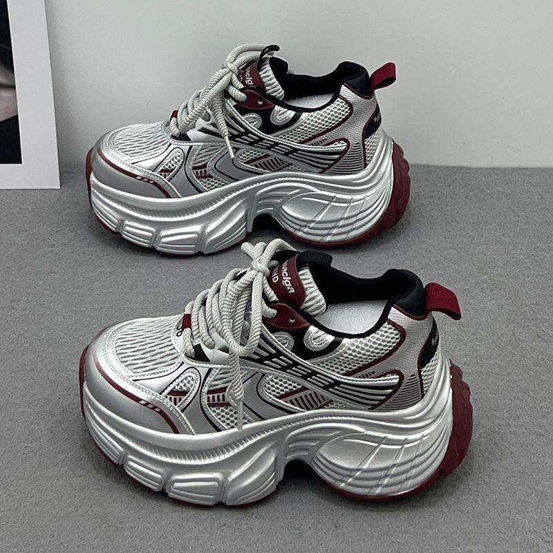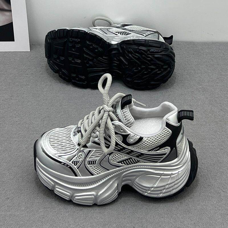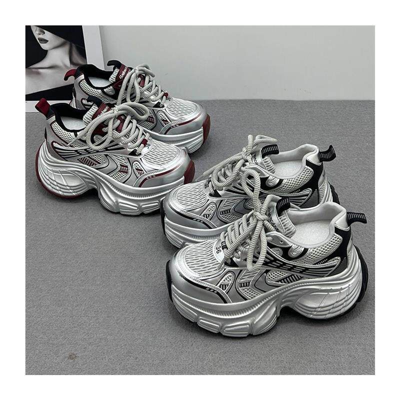 【幂琳】厚底增高老爹鞋女款2025新款春夏季q小个子休闲银色网面