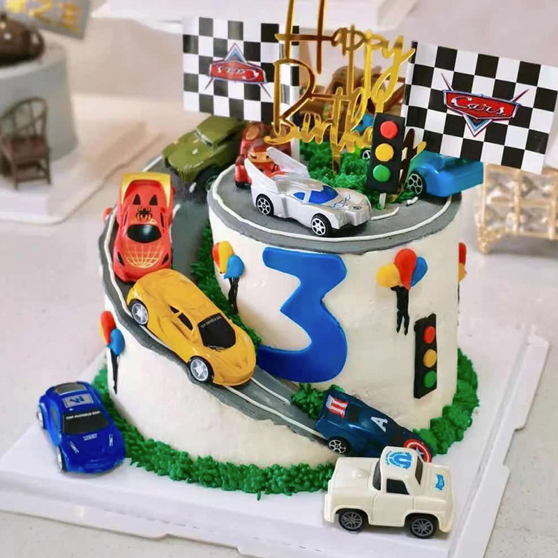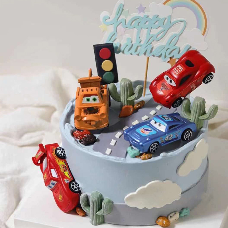 儿童节蛋糕装饰汽车动员卡通小汽车摆件烘焙甜品台生日蛋糕装饰