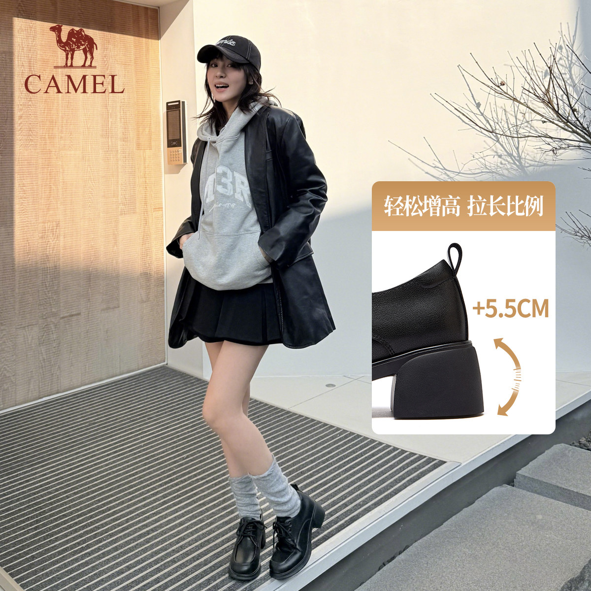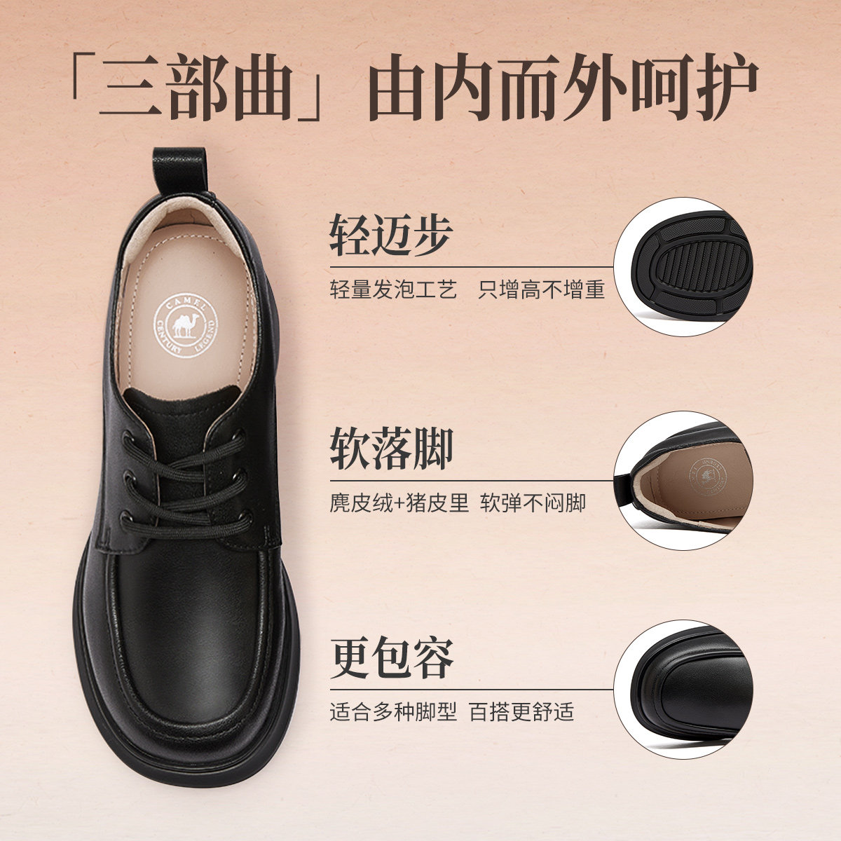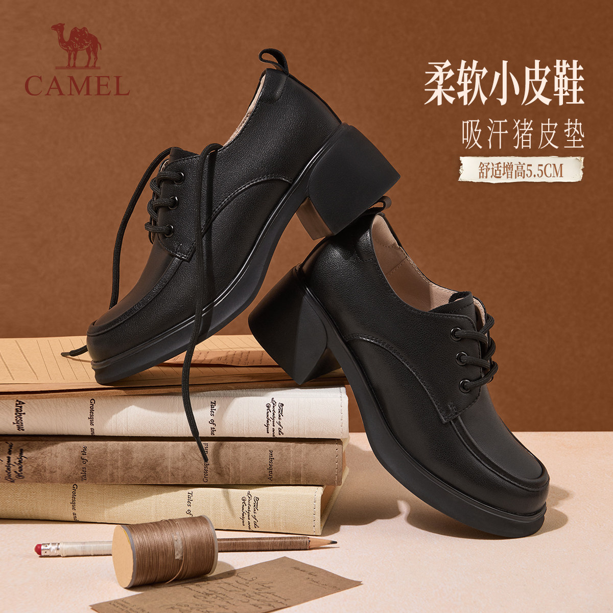 骆驼女鞋2026年春季新款休闲小皮鞋上班通勤面试单鞋粗跟乐福鞋女