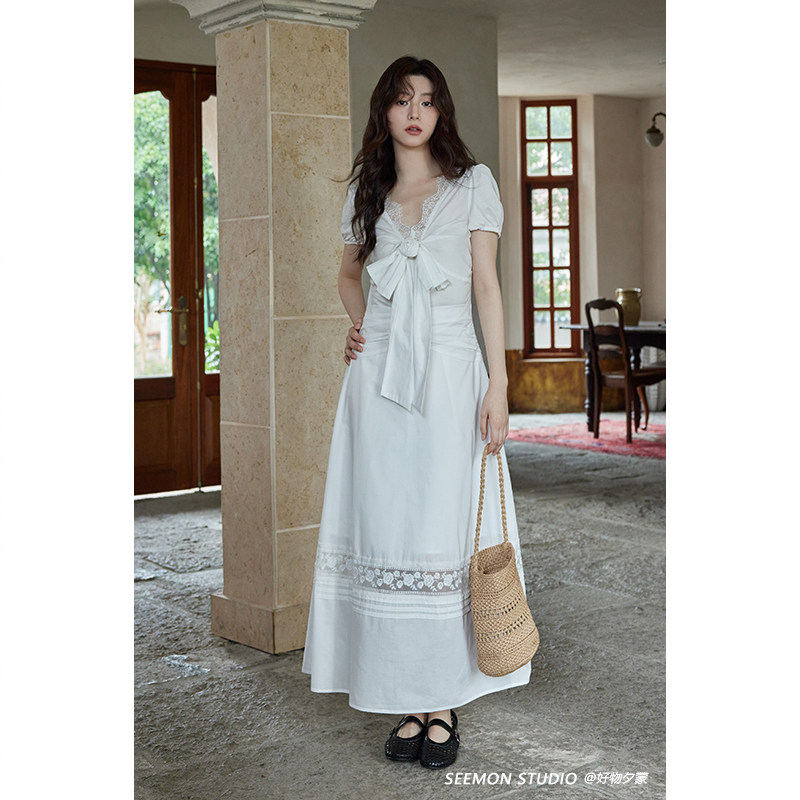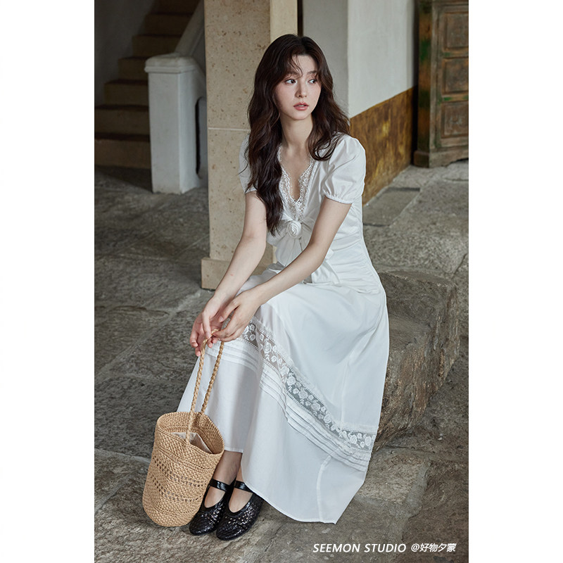 【清仓秒杀】夏气质白色裙子设计感小众高级独特不撞款蕾丝连衣裙