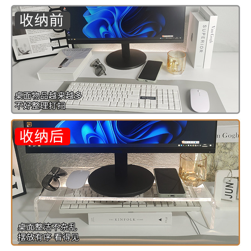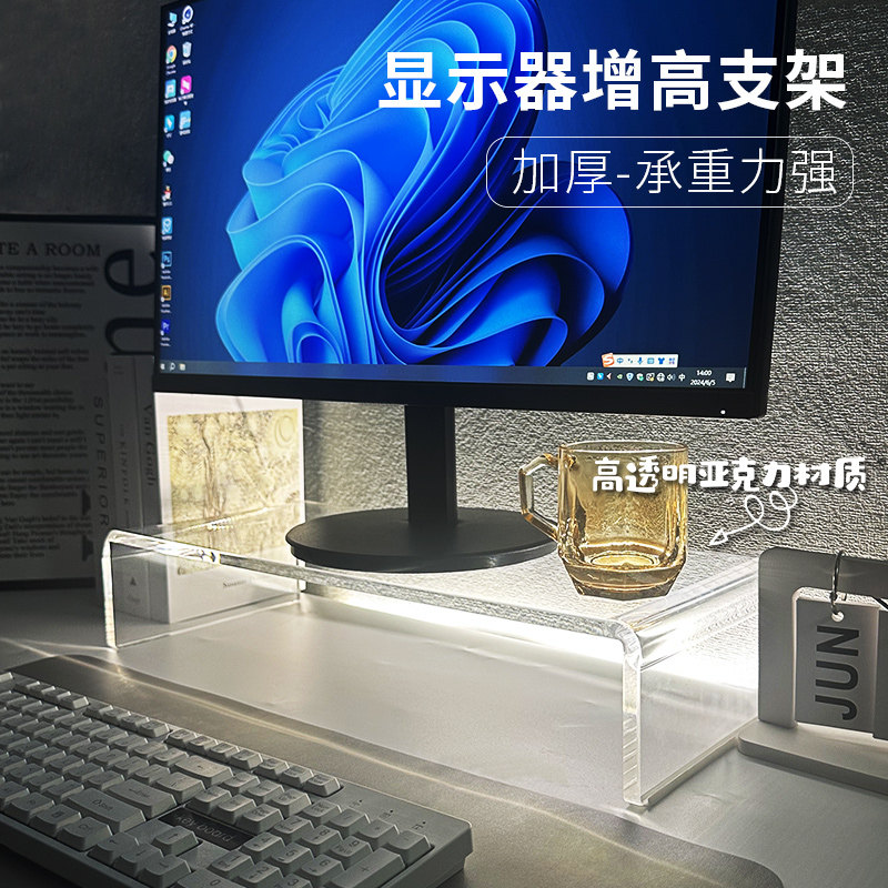 电脑显示器增高托架悬浮支架亚克力透明办公室桌面屏幕收纳置物架