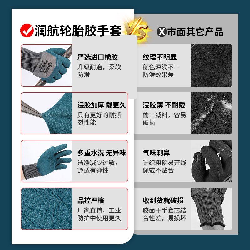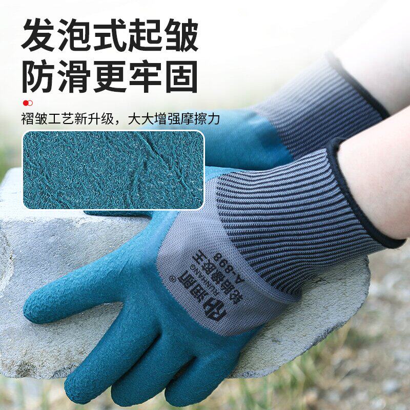 手套工作劳保耐磨防滑加厚劳动乳胶橡胶劳工防护干活工地浸胶防水