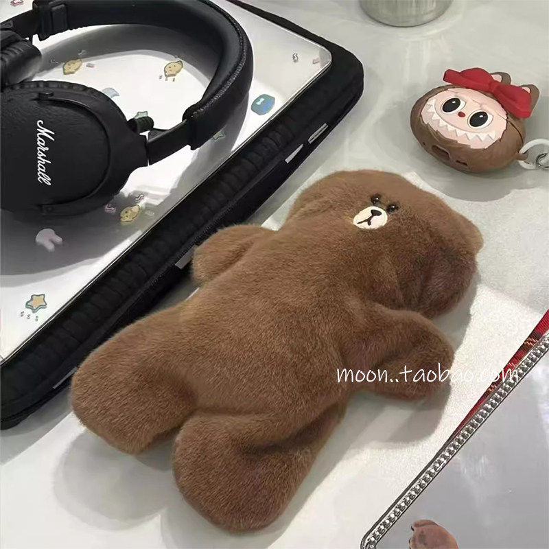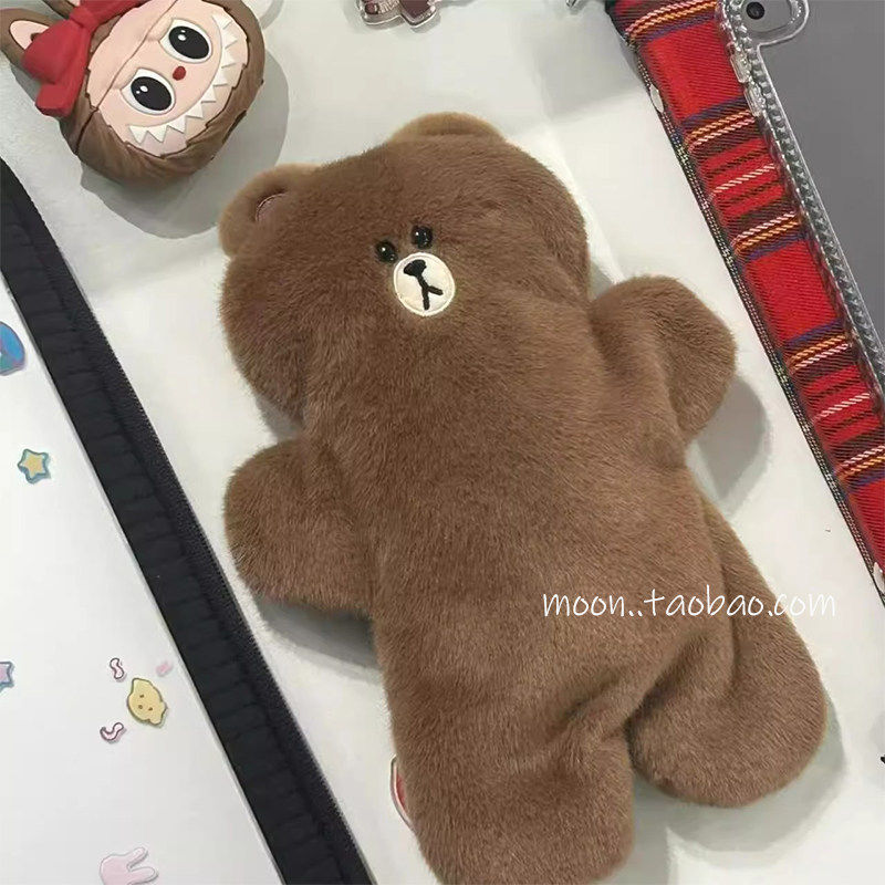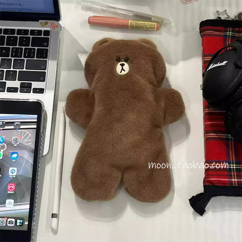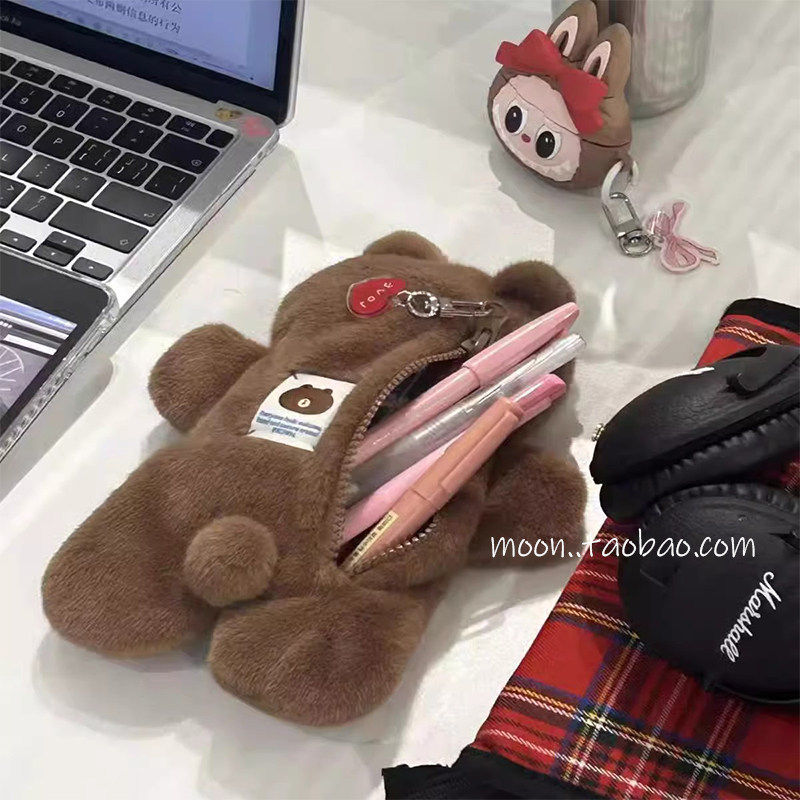 韩系布朗熊毛绒大容量笔袋高颜值小众女生初中生收纳袋学生文具盒