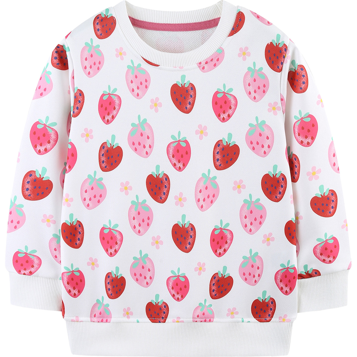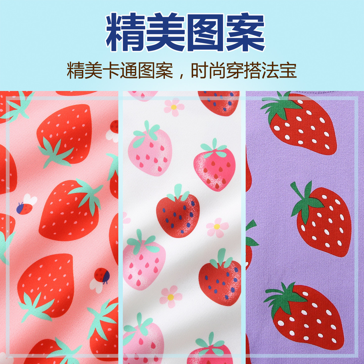 草莓女童不加绒卫衣卡通满印贴身内搭打底衫纯棉薄款毛圈中童上衣
