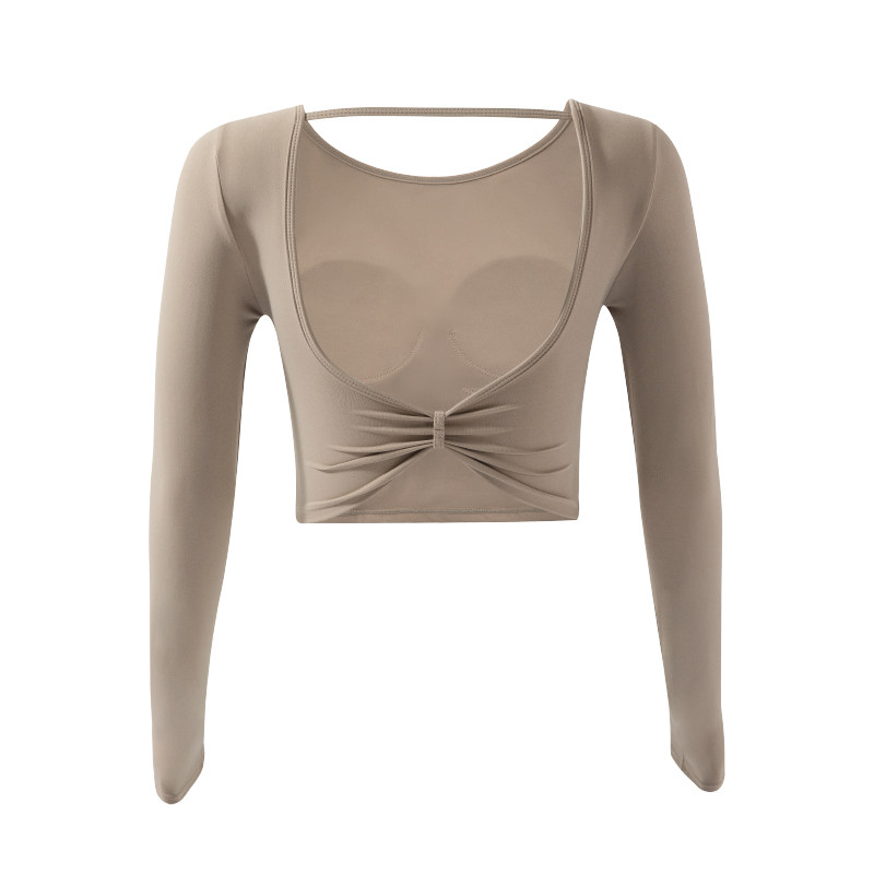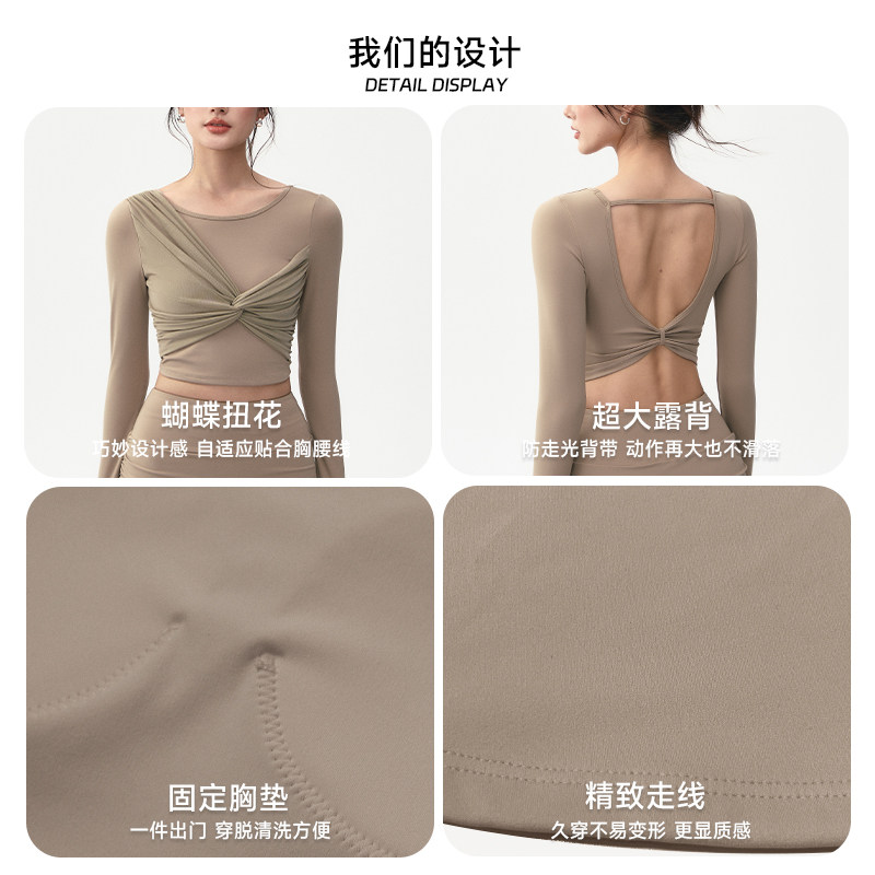 瑜伽长袖女蝴蝶美背带胸垫高弹运动健身上衣绝美普拉提训练服套装