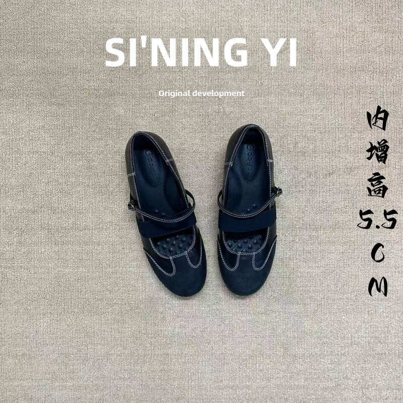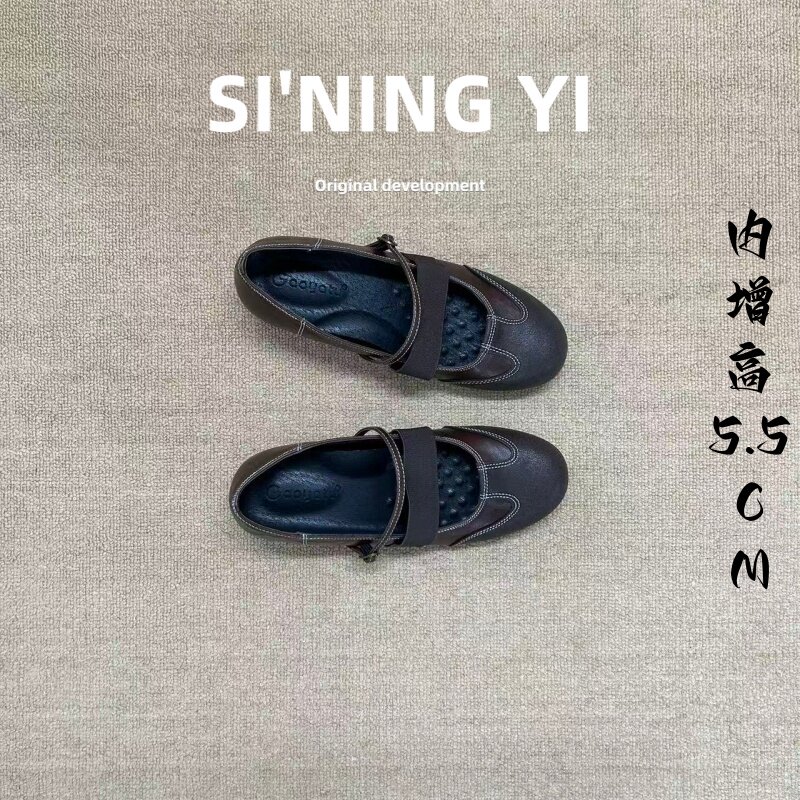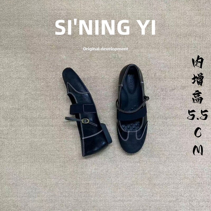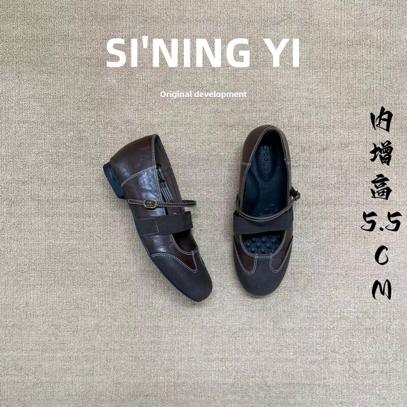 真皮复古内增高玛丽珍鞋女2026春季新款一字带时尚浅口单鞋乐福鞋