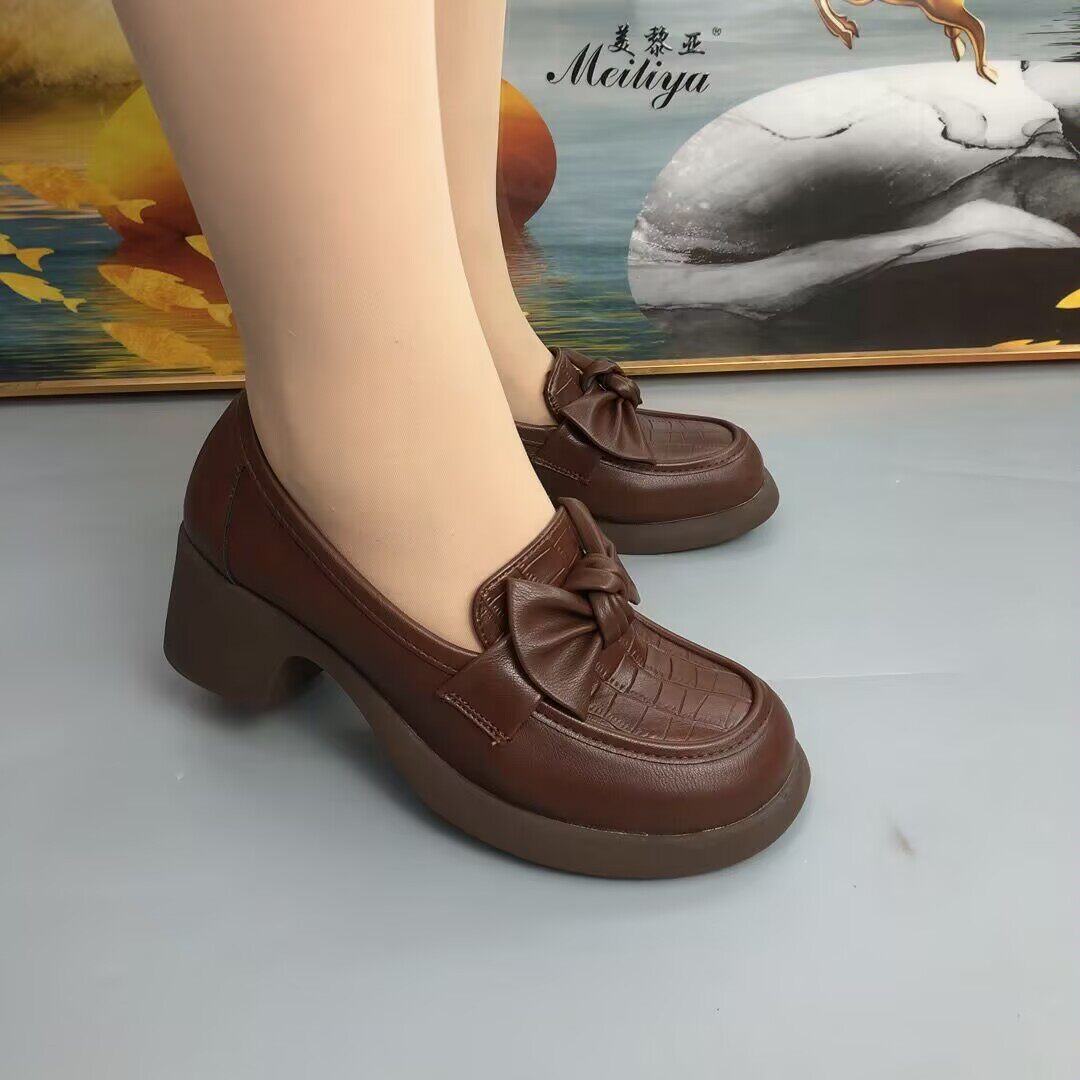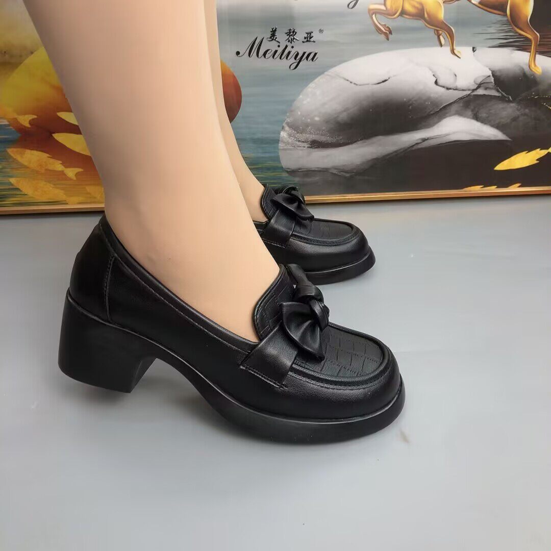 乐福鞋春秋款女鞋单鞋圆头低跟一脚蹬中老年妈妈鞋厚底防滑小皮鞋