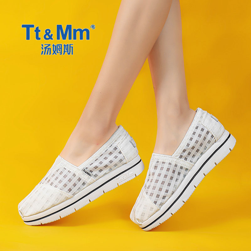 Tt&Mm/汤姆斯新款女鞋夏季薄款蕾丝布鞋厚底舒适百搭一脚蹬松糕鞋