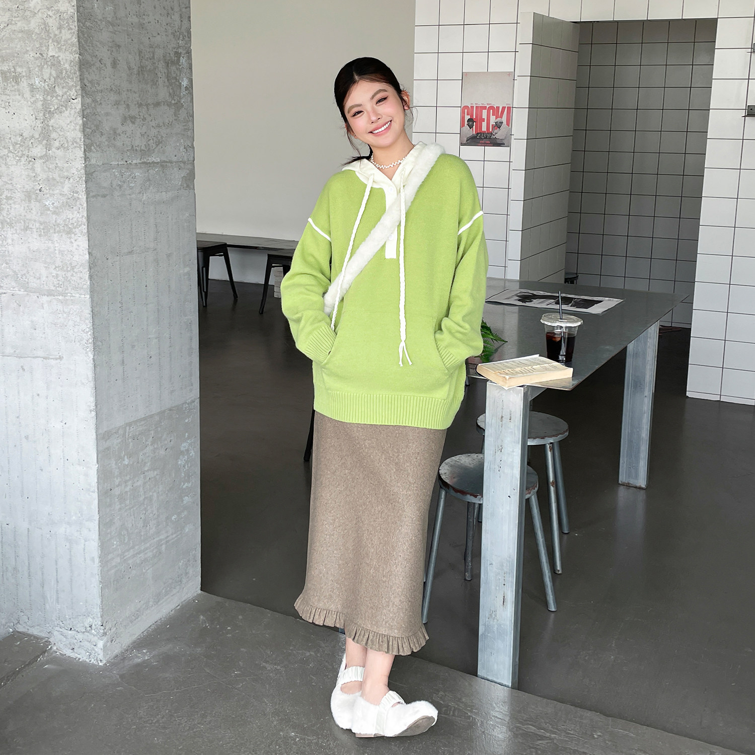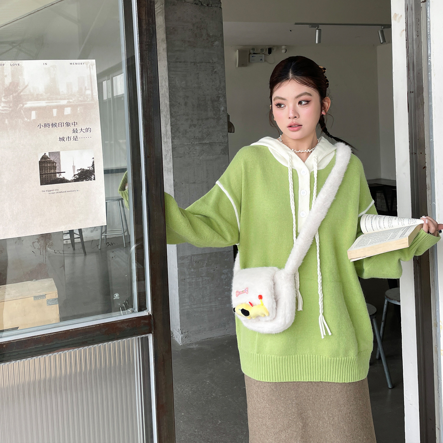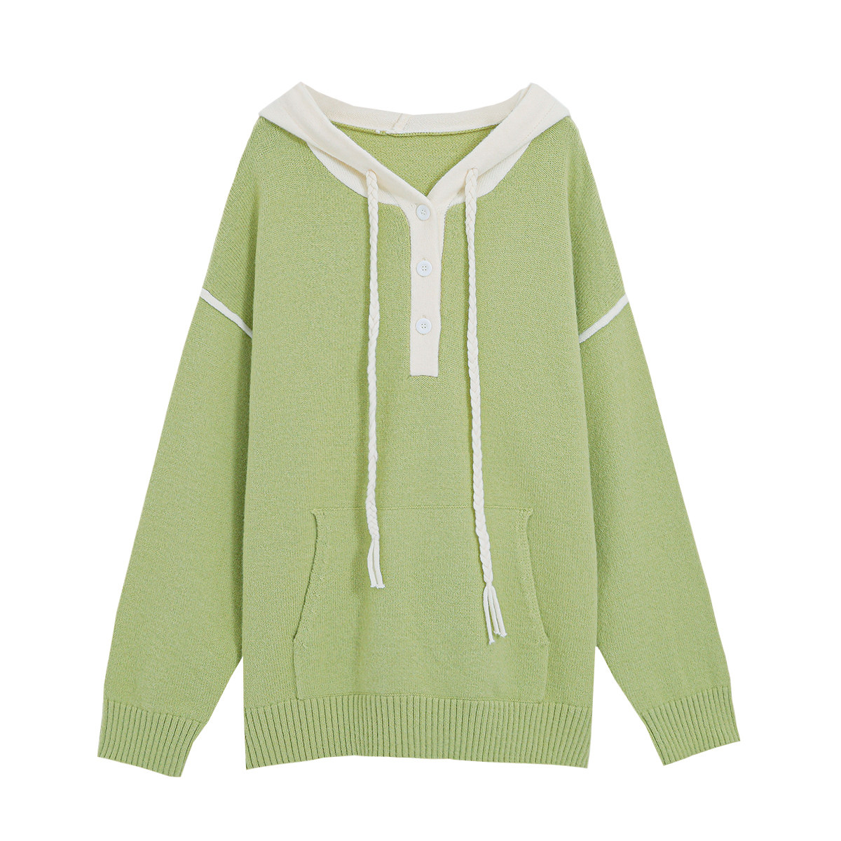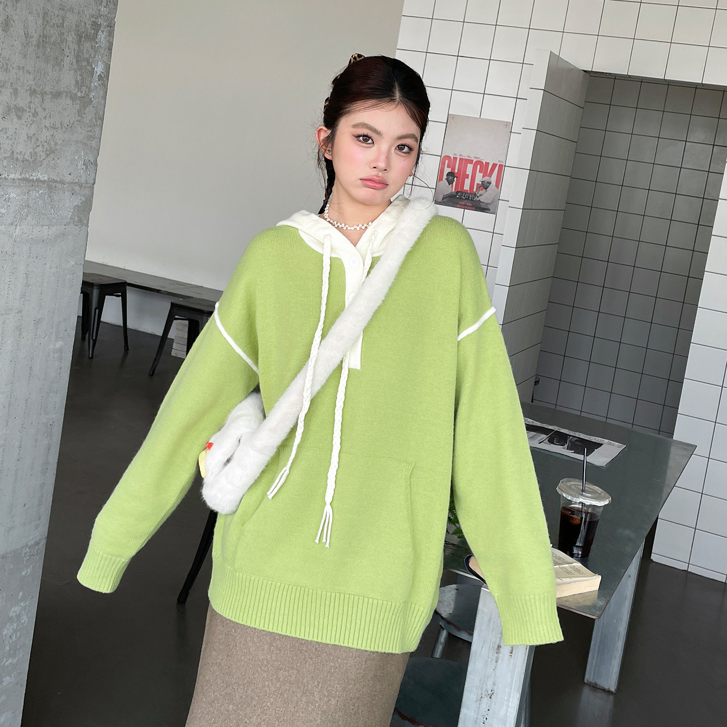 春款2026新款大码女装撞色拼接连帽上衣设计感胖mm慵懒高级感毛衣