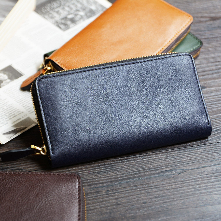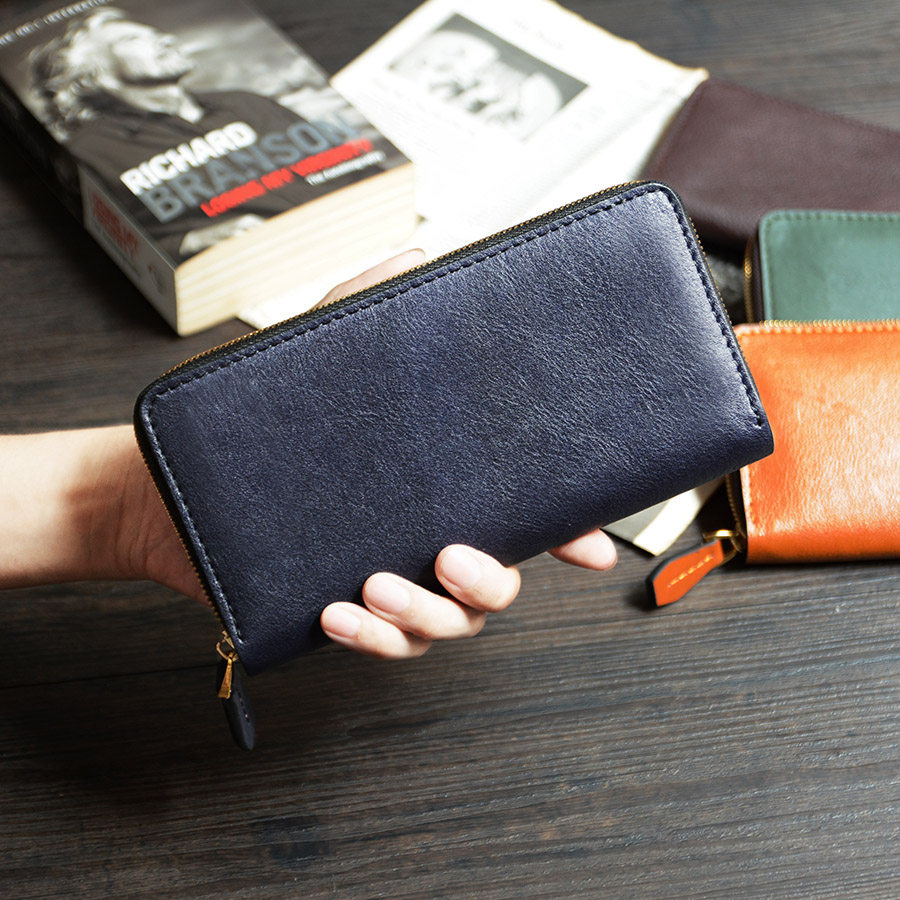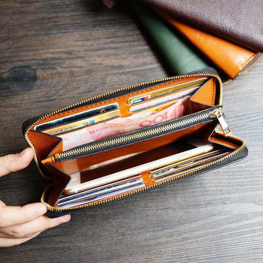 牧石皮艺手工定制皮具真皮拉链钱夹男银包牛皮日式手包女长款钱包