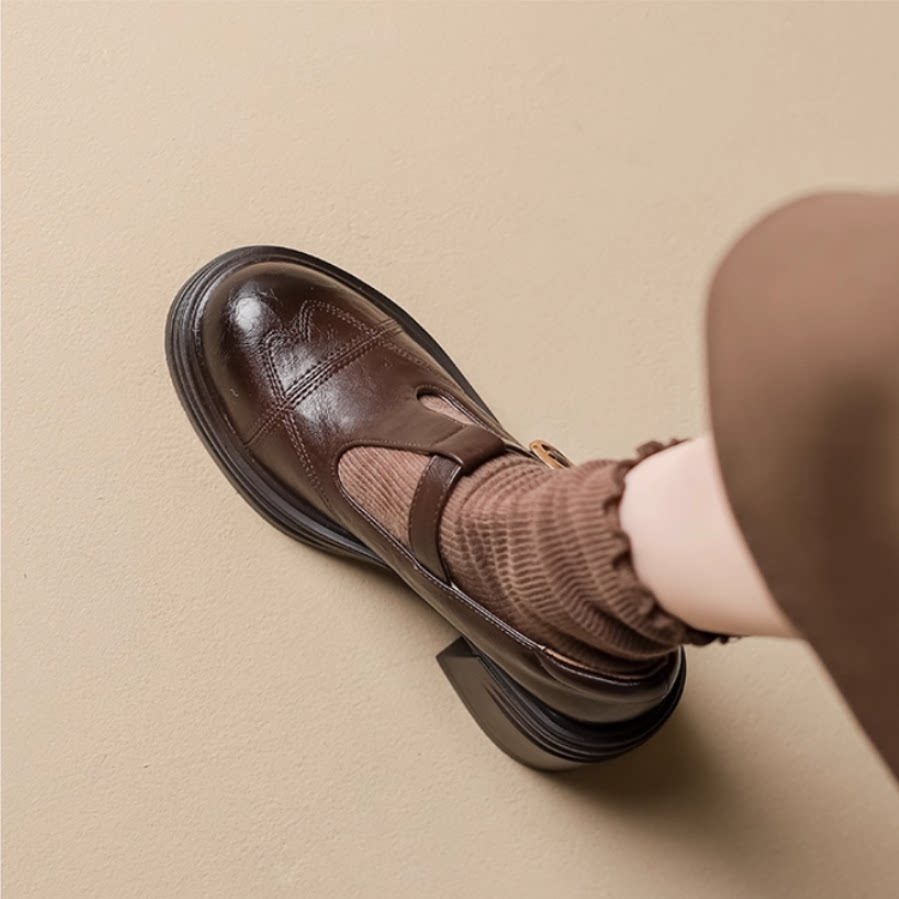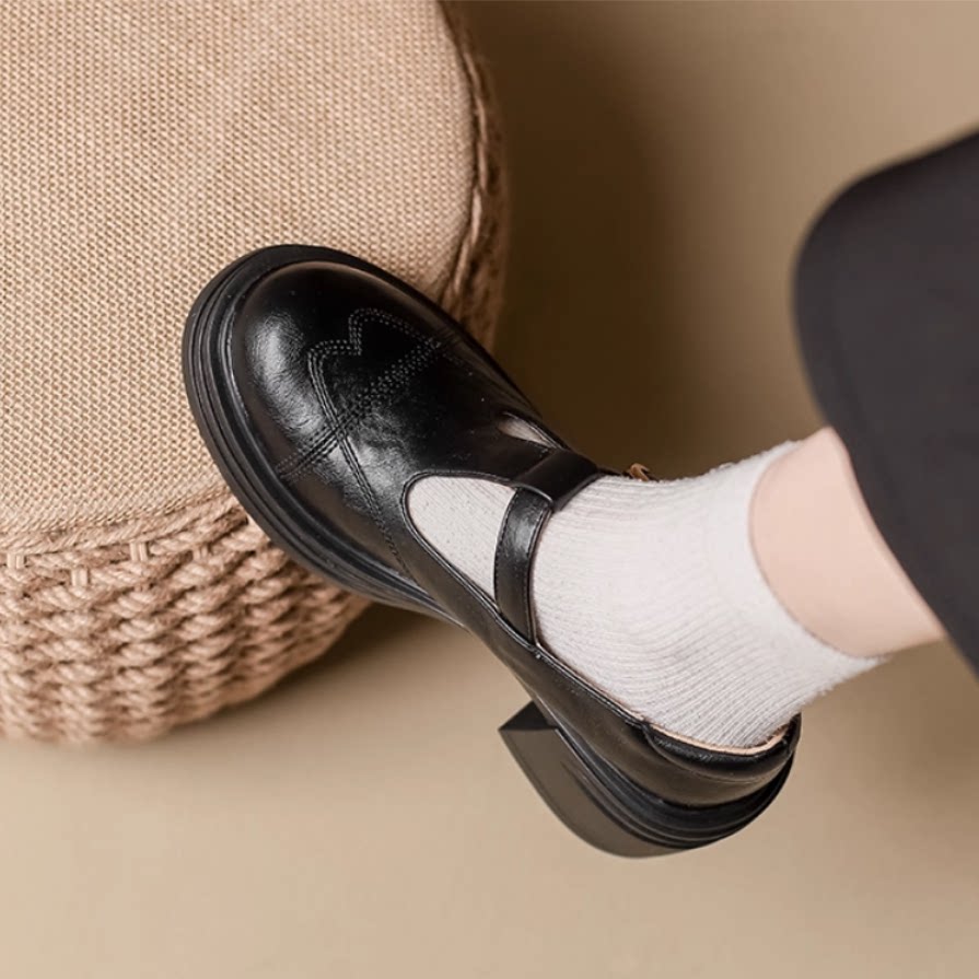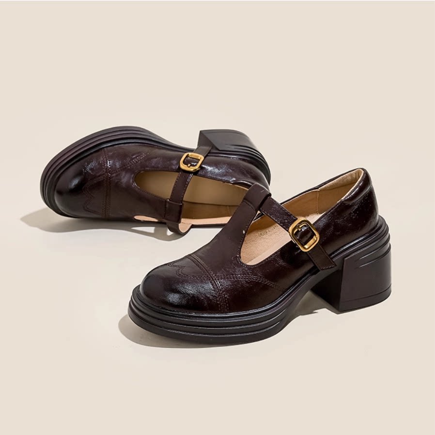 10CM复古玛丽珍粗高跟浅口单鞋隐形内增高真皮英伦小个子百搭女鞋