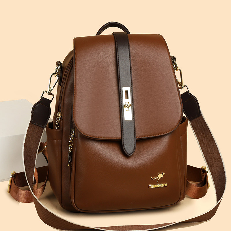 正品真皮女士双肩包女2025新款旅行休闲大容量软皮背包防水电脑包