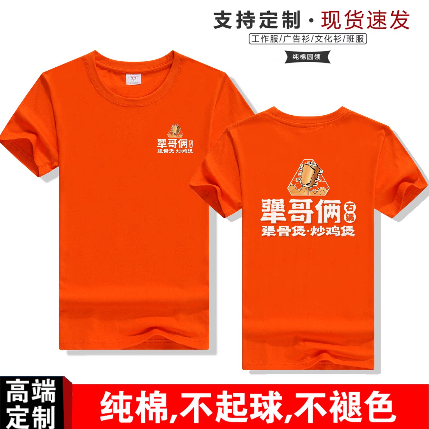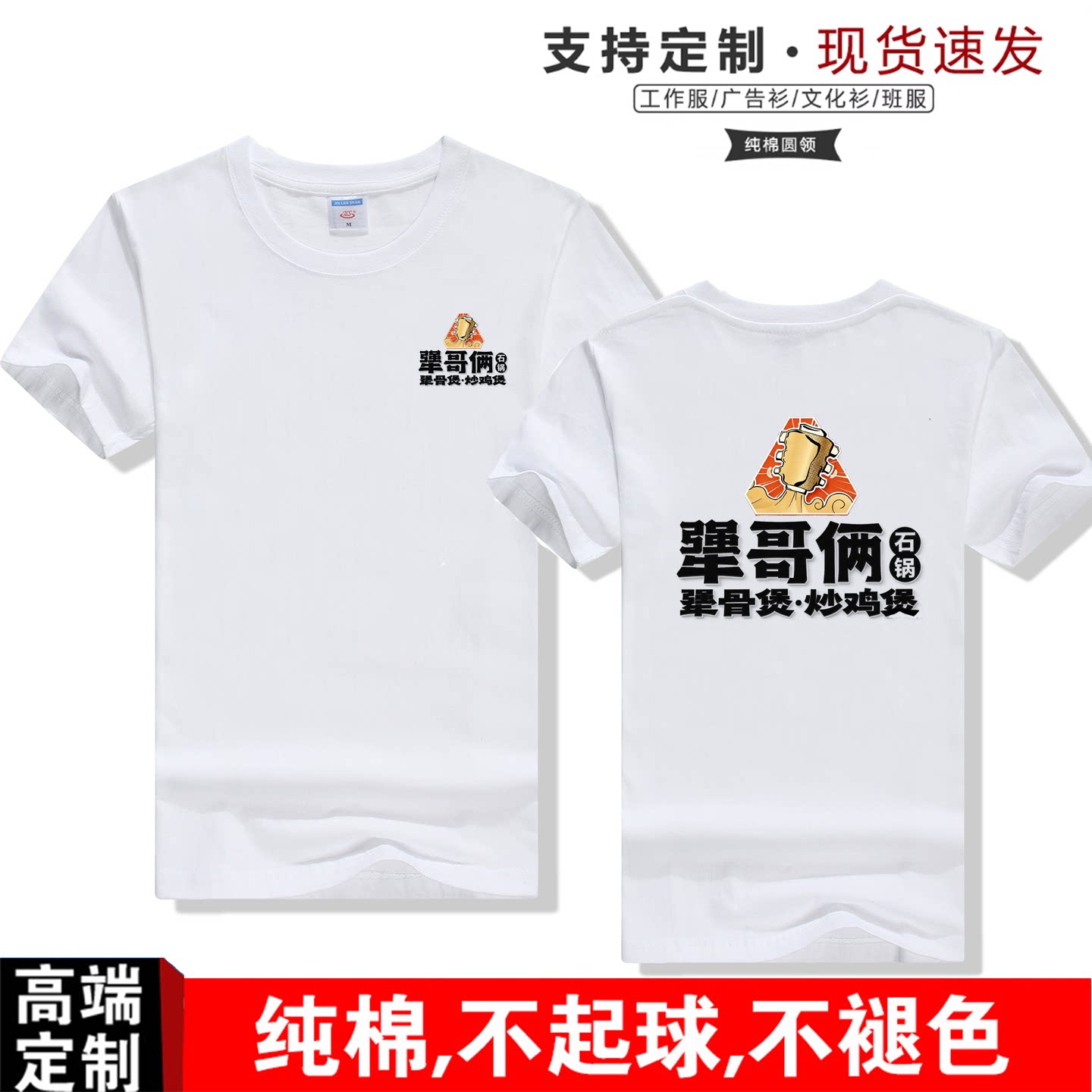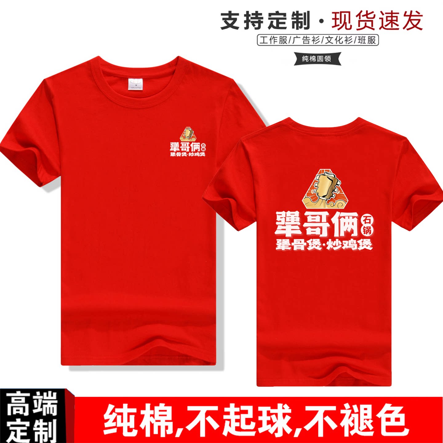 犟哥俩犟骨煲炒鸡煲工作服半袖男餐饮定制纯棉圆领T恤女印字logo