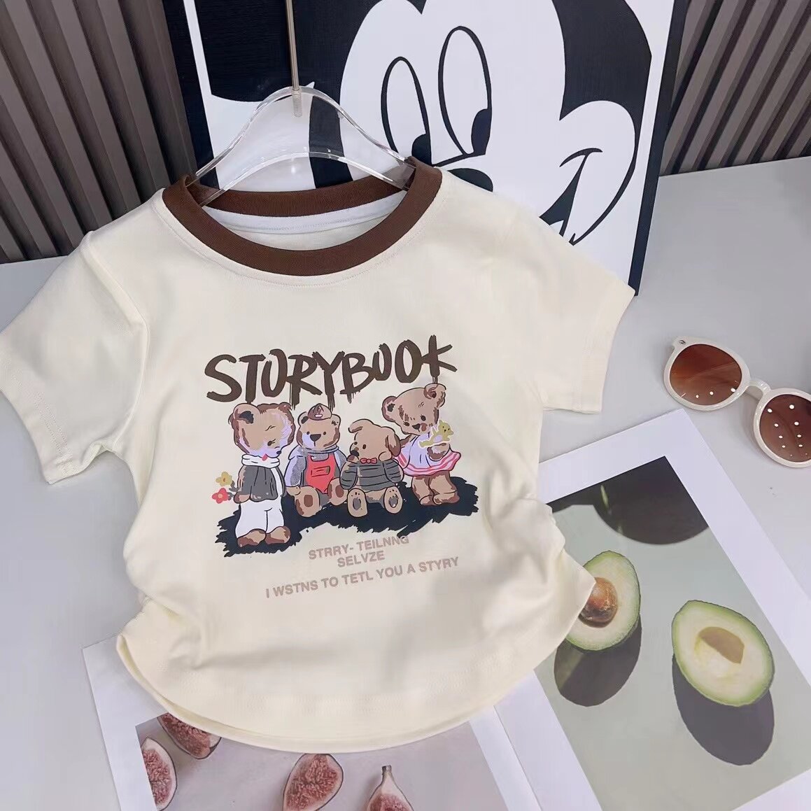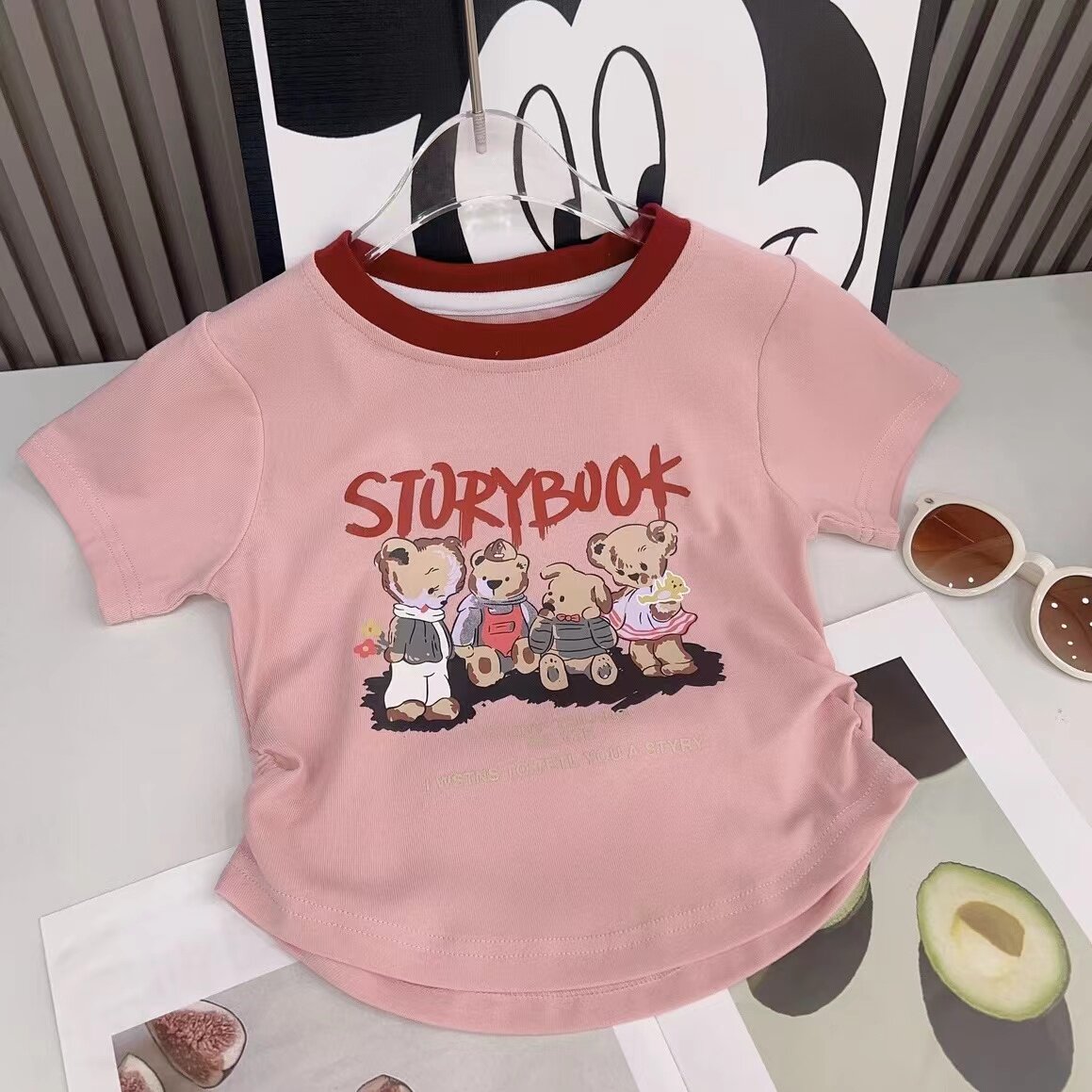 纯棉女童短袖T恤夏装新款小孩儿童宝宝卡通洋气修身高腰短款上衣