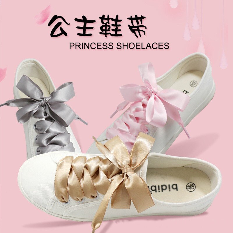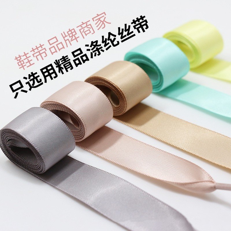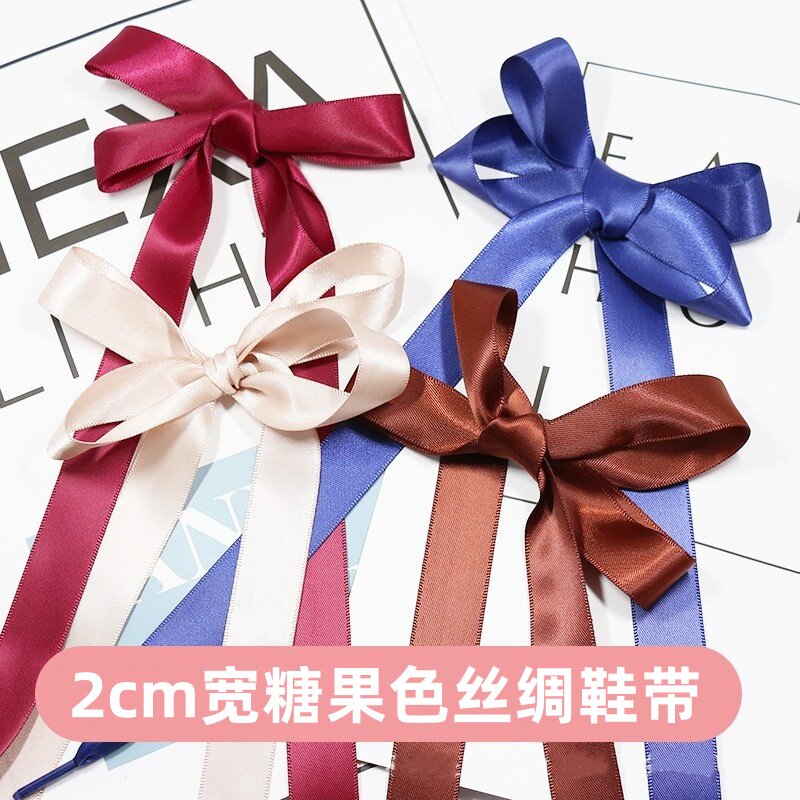2cm宽丝绸鞋带蕾丝绸缎织带黑白彩色糖果色扁平丝带休闲鞋板鞋绳