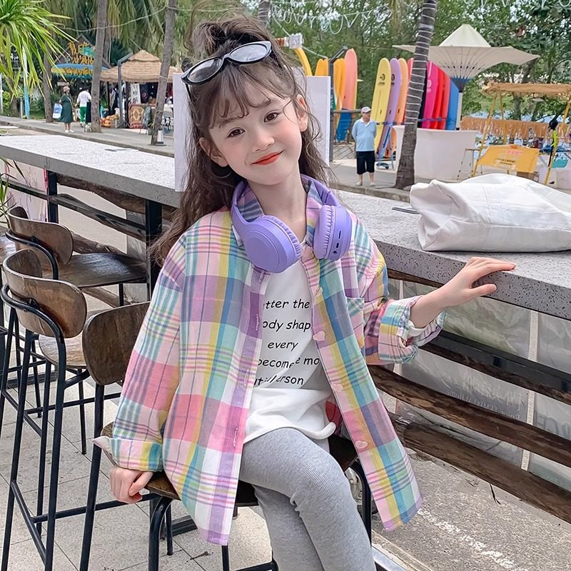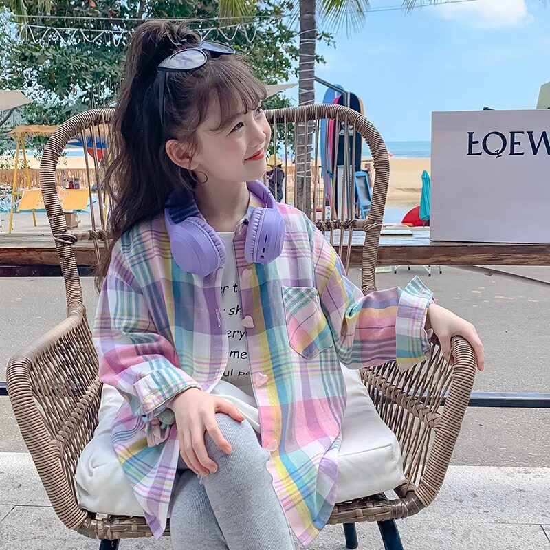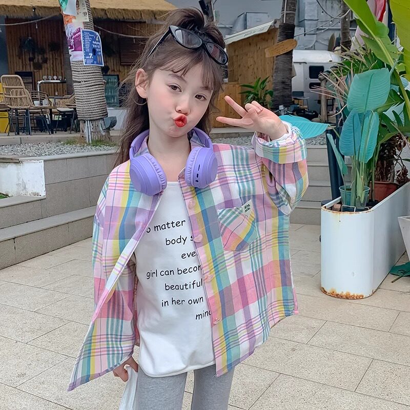女童格子衬衫春装2026新款洋气长袖春秋款开衫外套小女孩韩版上衣