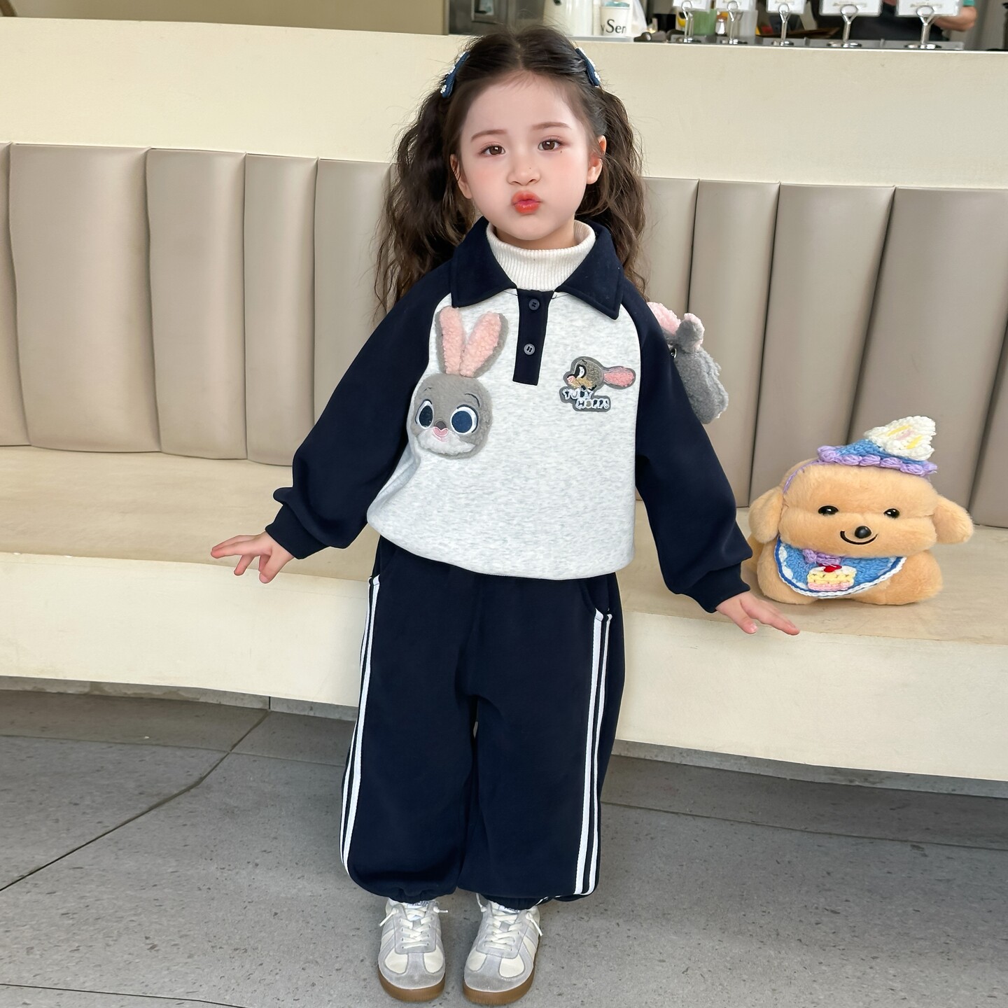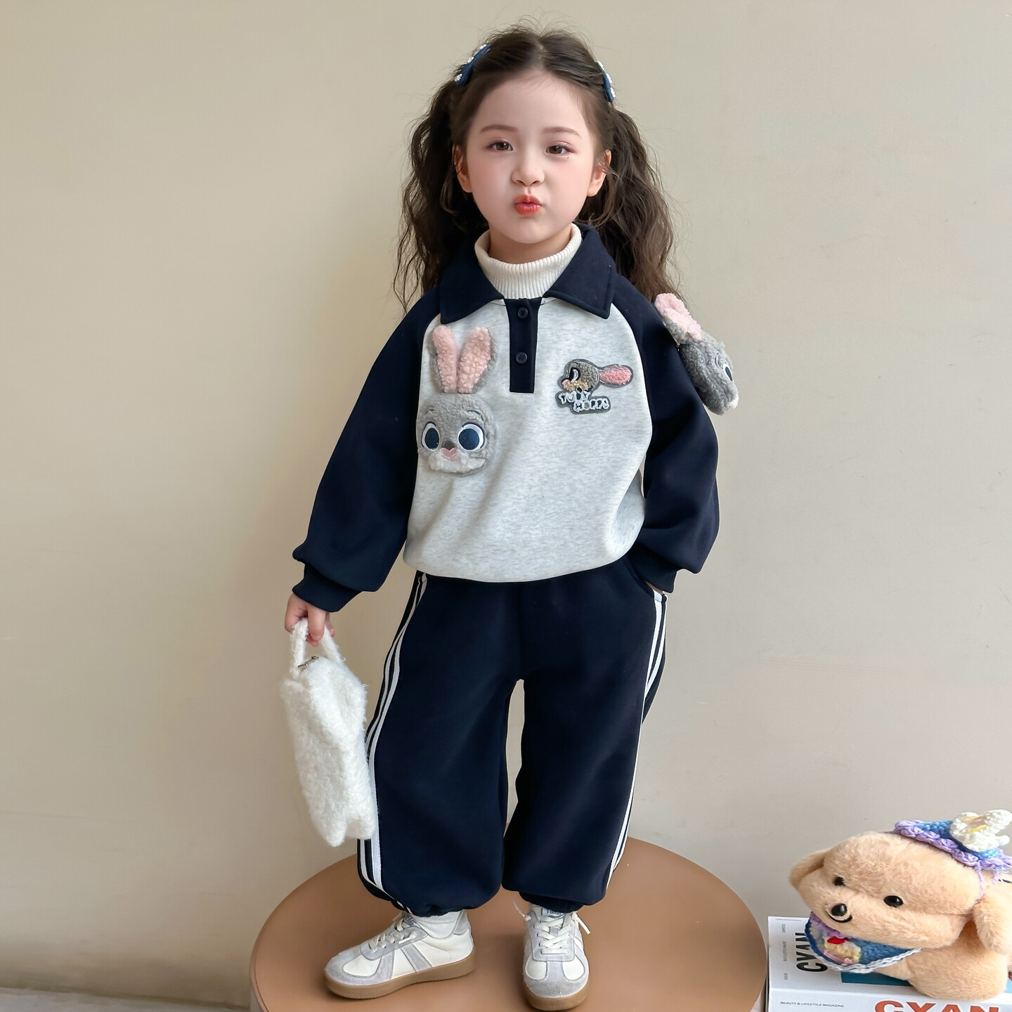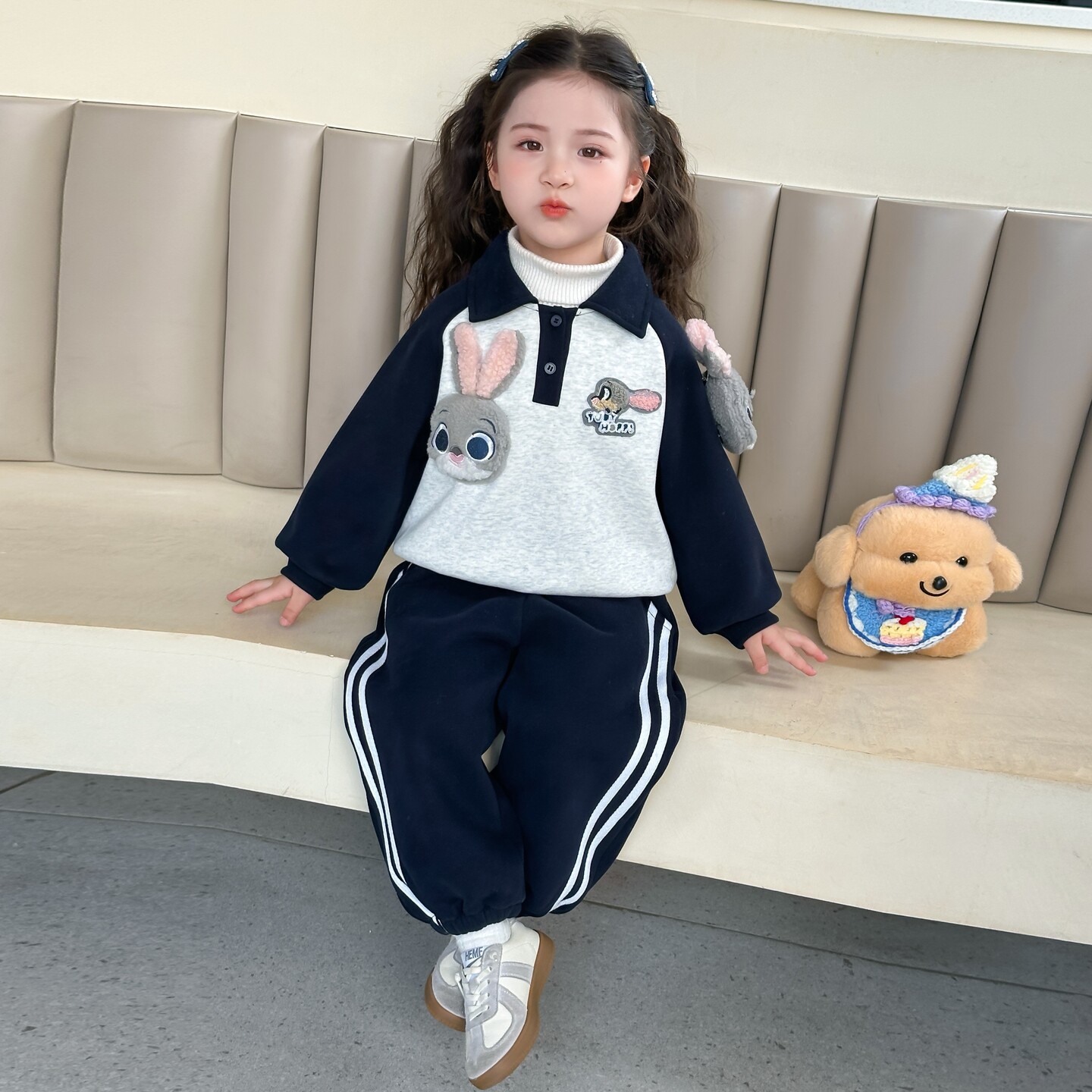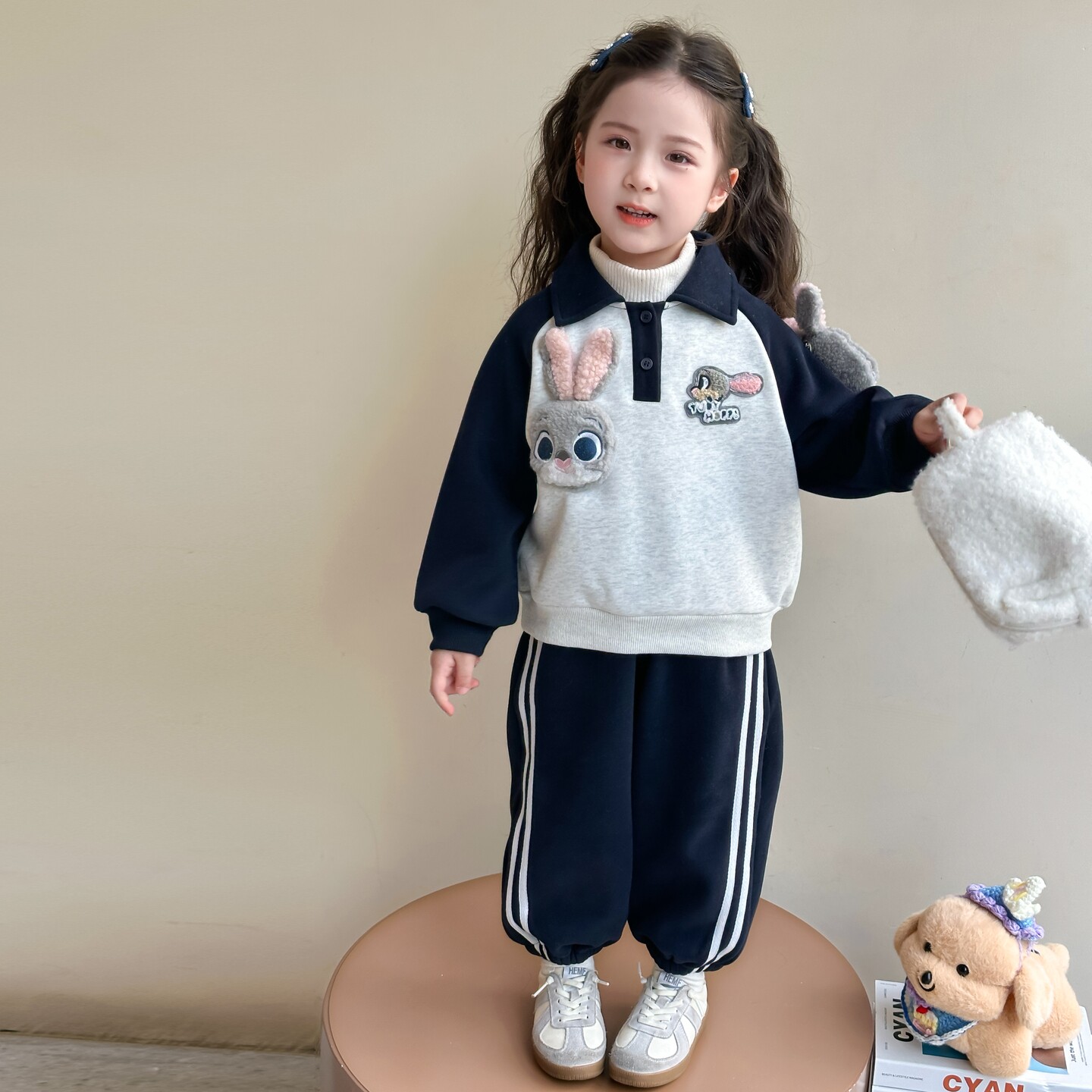 女童兔子卫衣套装冬装宝宝洋气加厚兔子警官运动两件套秋冬季加绒