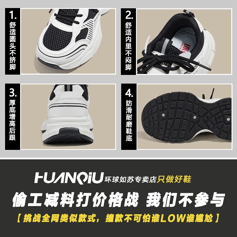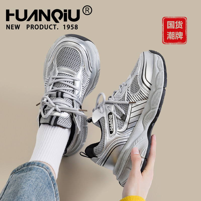 环球厚底银色老爹鞋女款2026新款春季透气增高鞋子休闲百搭运动鞋