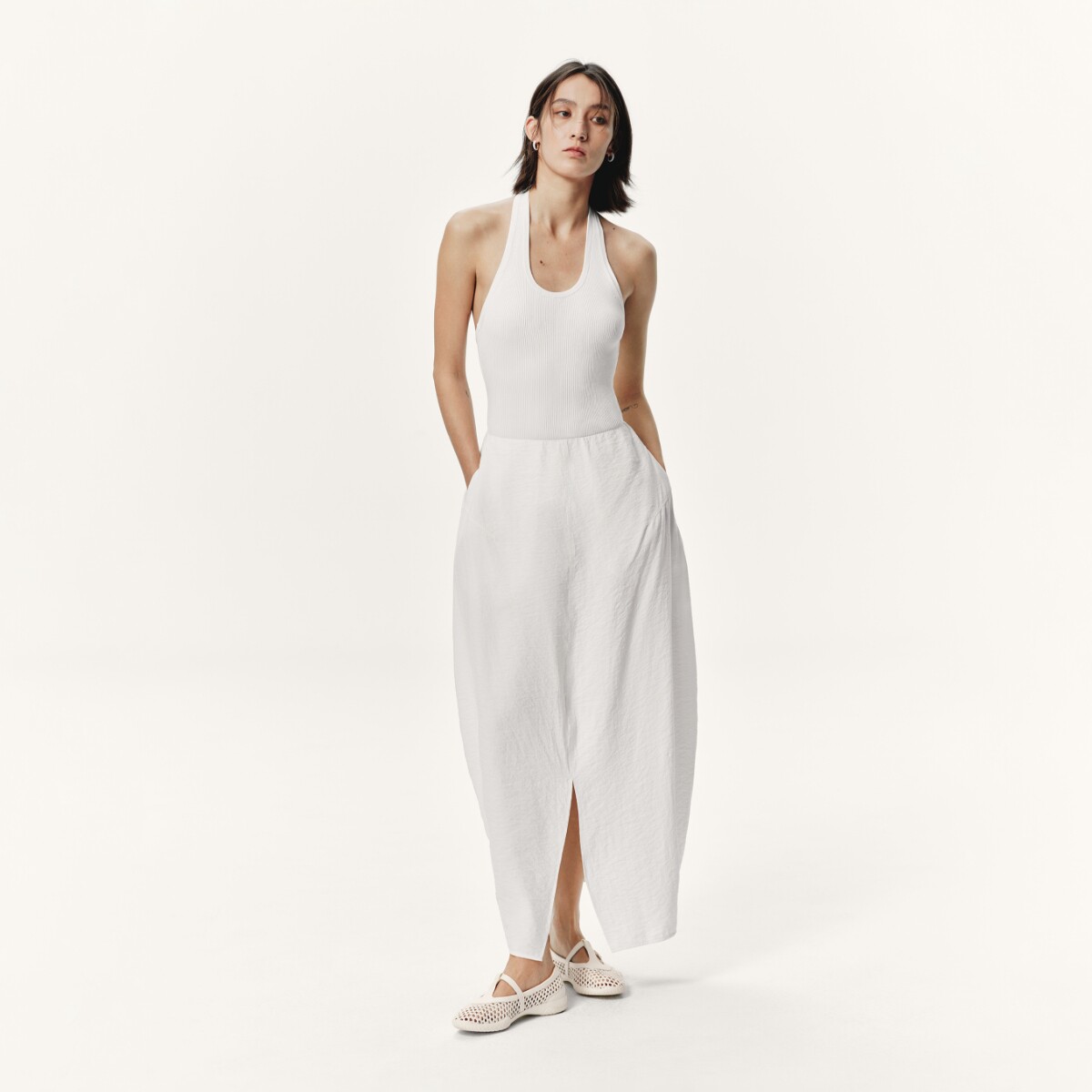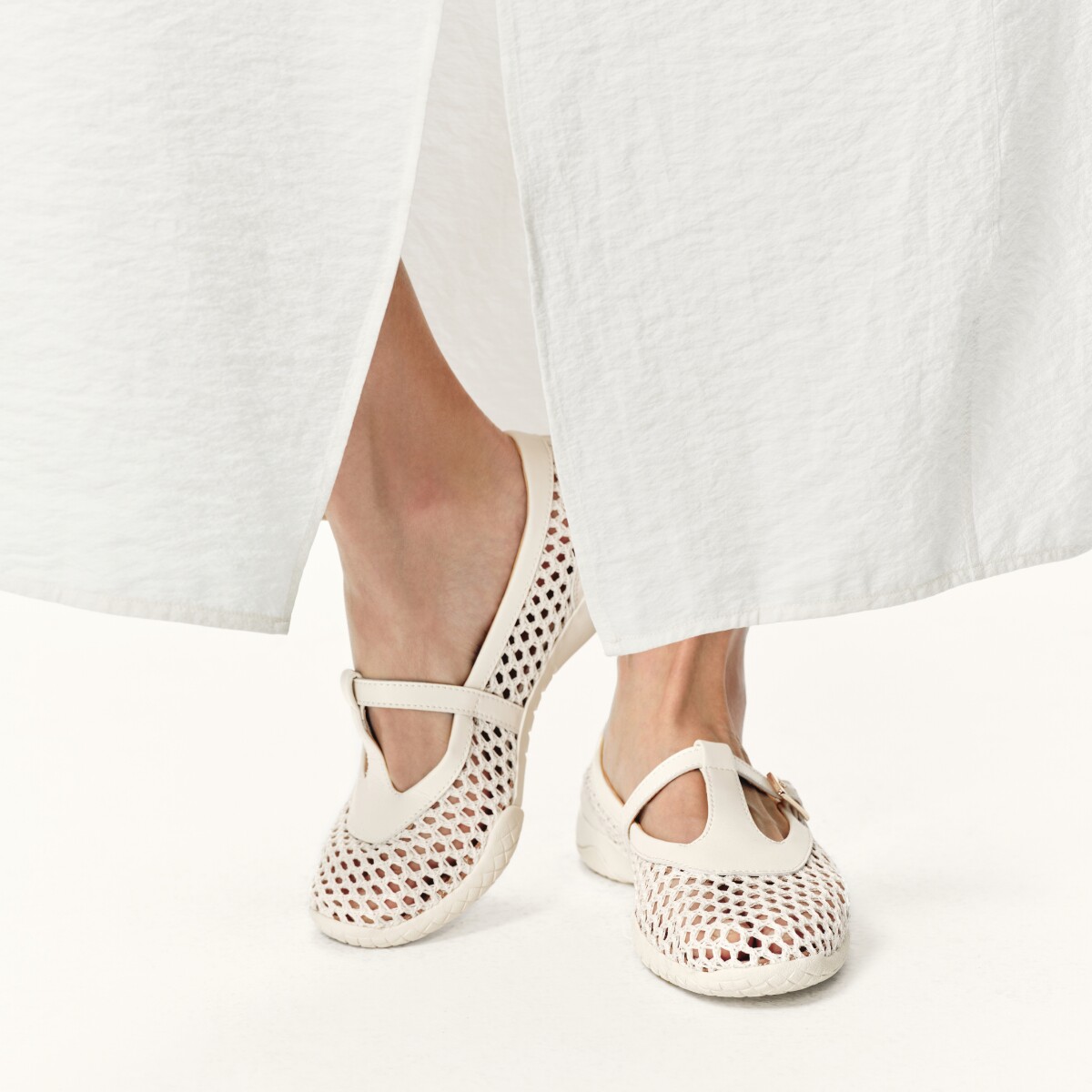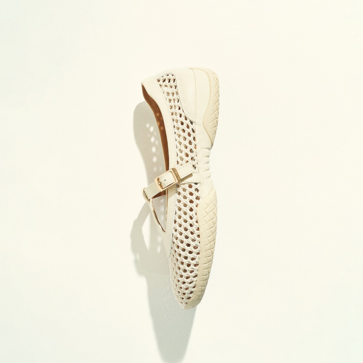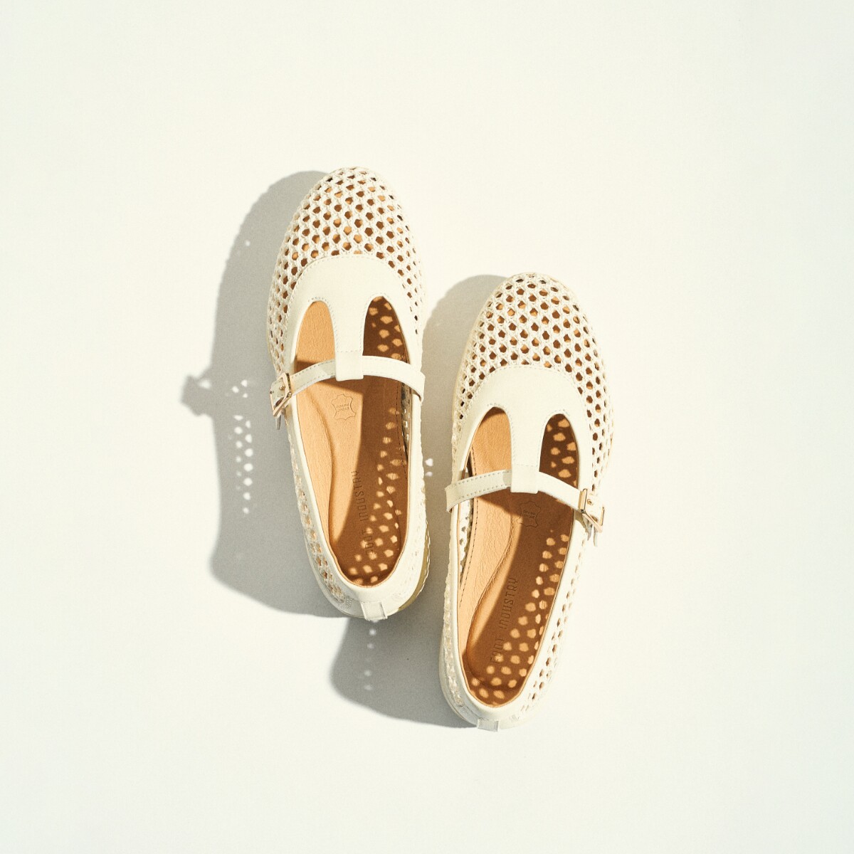 足下工业渔网芭蕾鞋 FOOT INDUSTRY古白色女鞋春夏休闲网面透气