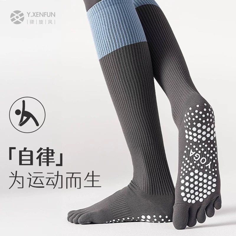 普拉提防滑袜专业级小腿五指袜瑜伽防滑肌能压缩袜运动跑步长筒袜