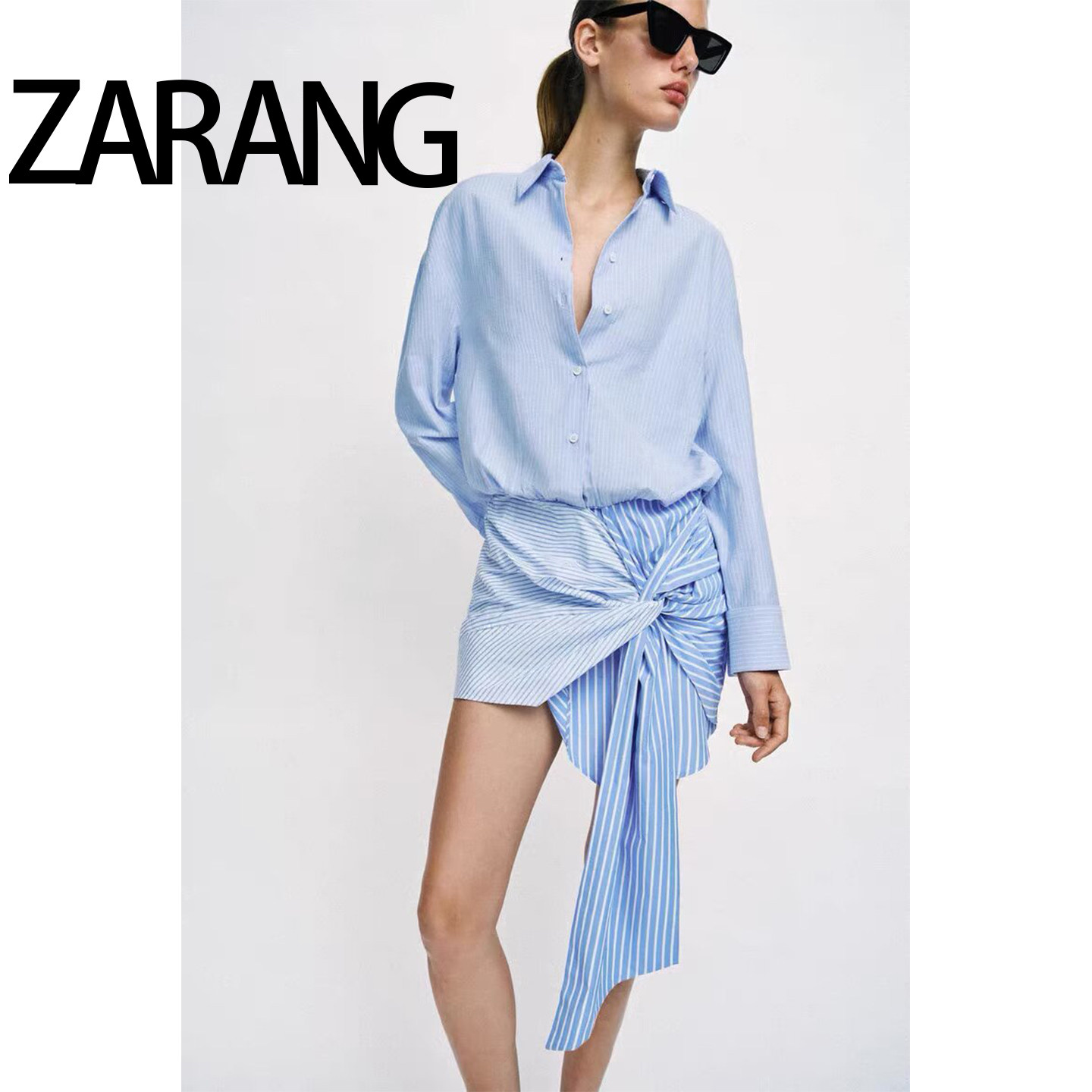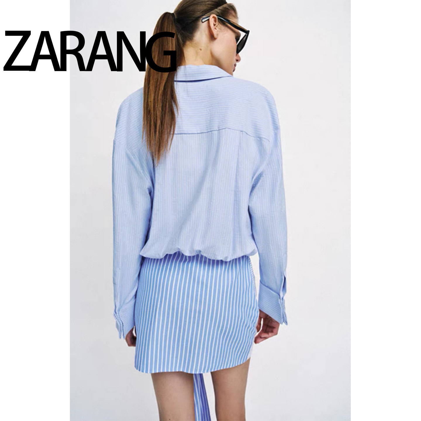 ZAZR 2026春季新品 女装 时尚气质潮流长袖衬衫式结饰短款连衣裙