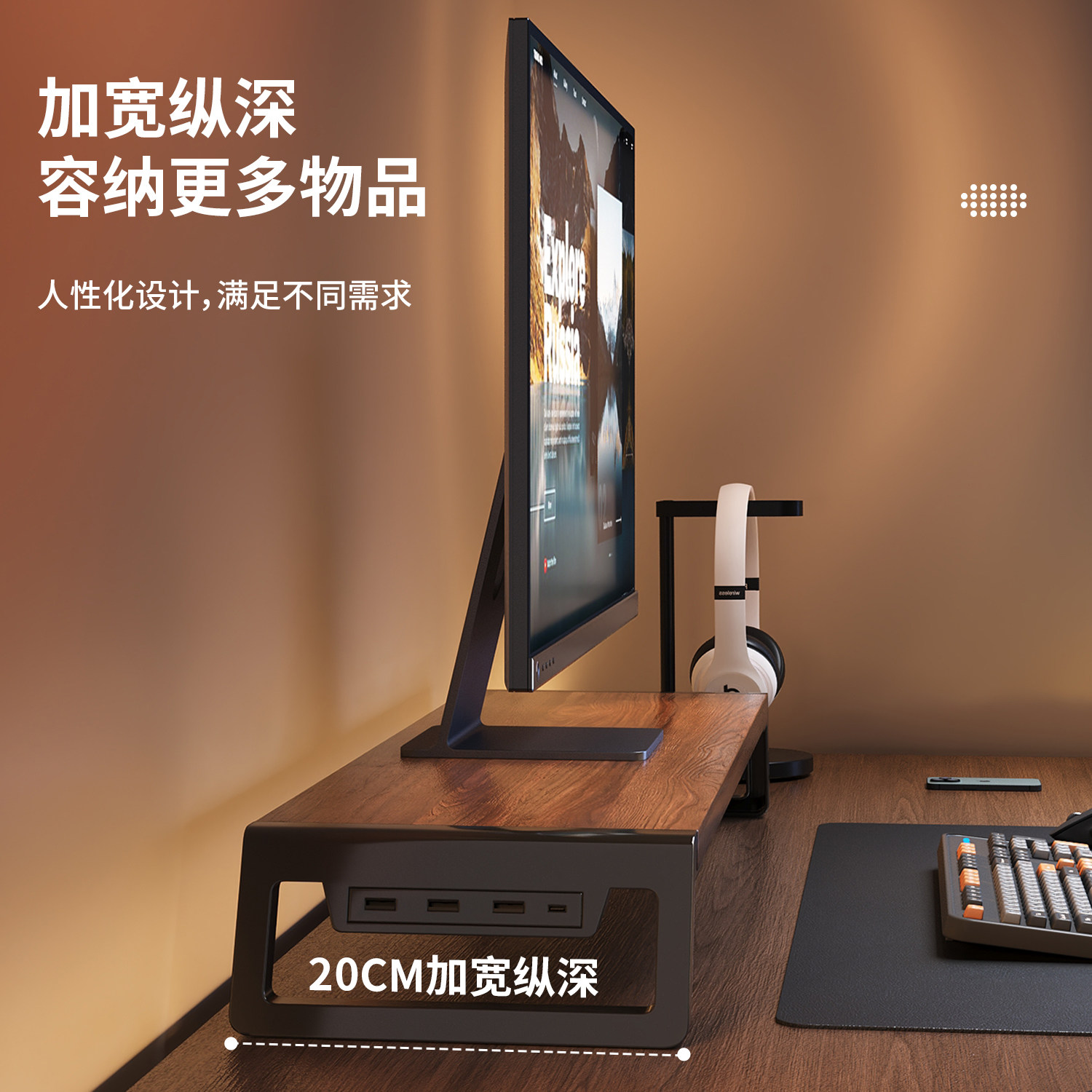 电脑支架笔记本带usb拓展坞平放散热宿舍家用办公室桌面工位增高架笔记本支撑架悬空显示器通用置物架台式